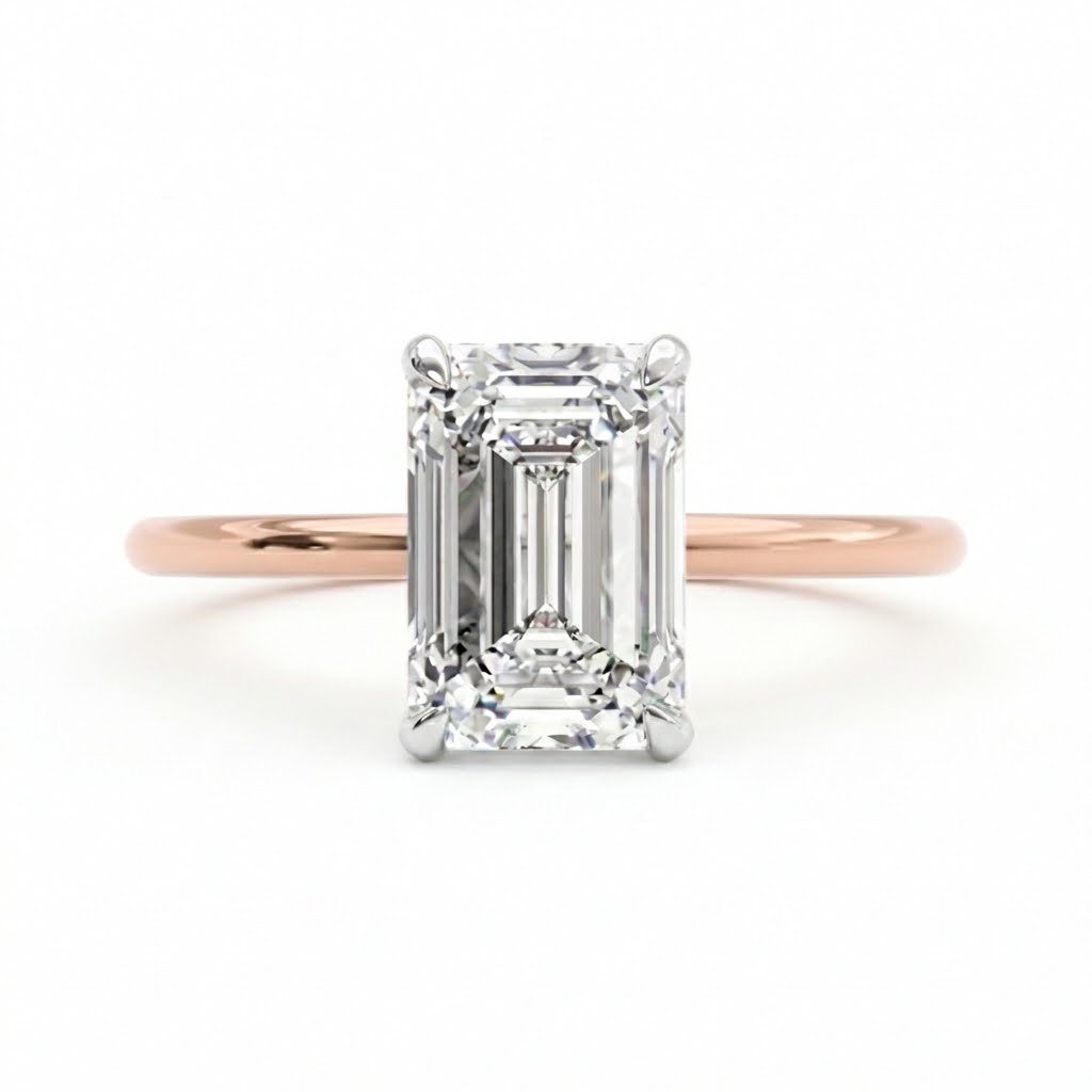 אורורה היא טבעת סוליטר מהממת עם שיבוץ בהילה המוסתרת, בעיצוב מינימליסטי שמתמקד ביהלום המרכזי בחיתוך אמרלד – חיתוך מלבני יוקרתי עם פאות מדורגות שמדגישות עומק וברק שקט.