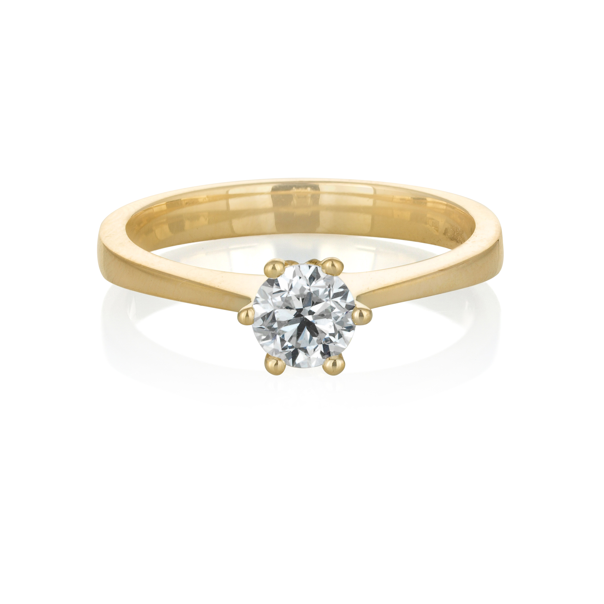 אליזבטה היא טבעת סוליטר יפיפייה מזהב צהוב בעיצוב מינימליסטי ונקי, המדגישה את יופיו של היהלום המרכזי בחיתוך עגול. שיבוץ שיניים מדויק בעל 6 שיניים מבליט את האבן המרכזית ומקנה לה נוכחות זוהרת ובטוחה. עיצוב מושלם למי שמחפשת קלאסיקה מדויקת עם נגיעה עכשווית ועדינה.