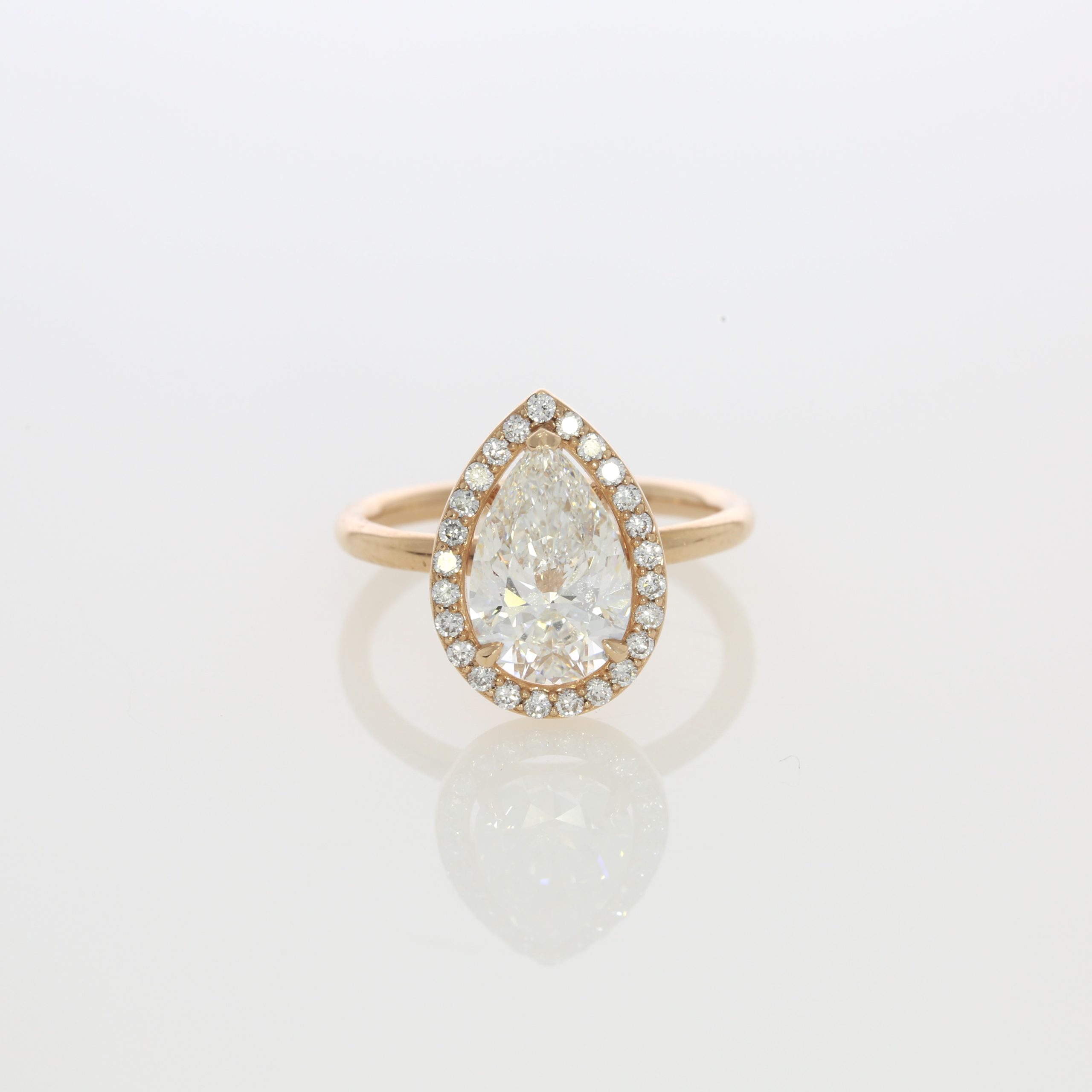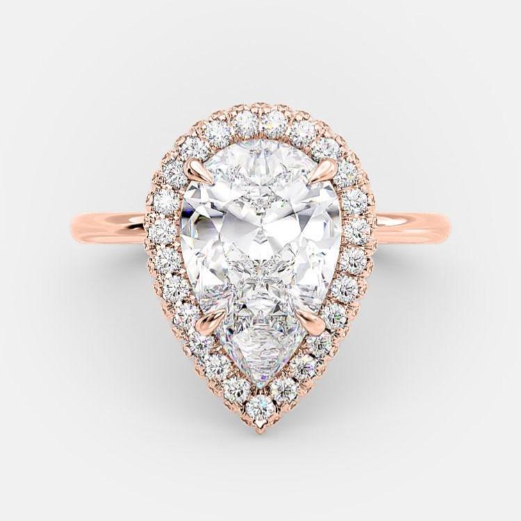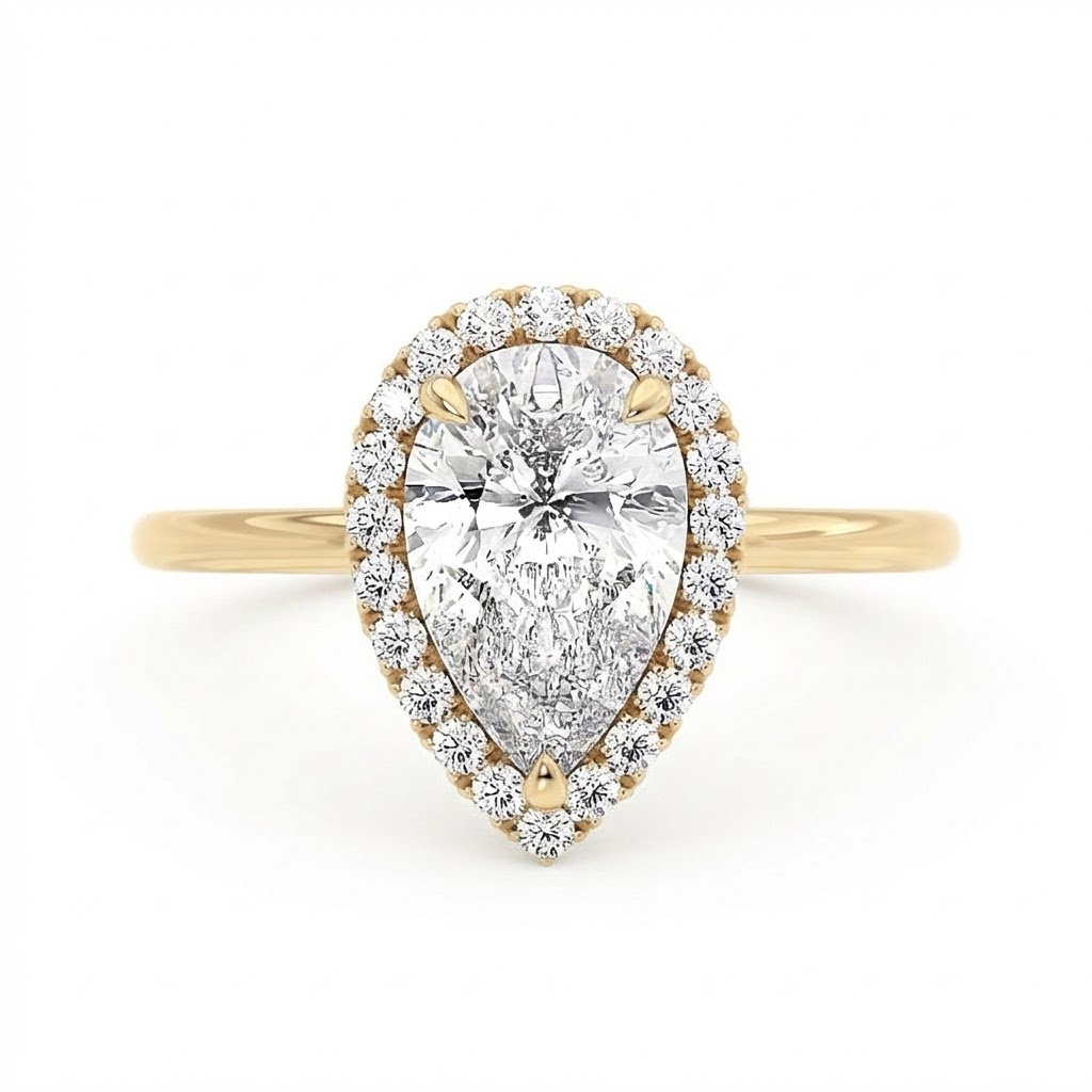 ארבל היא טבעת הילו מרהיבה עם יהלום מרכזי בחיתוך טיפה (Pear) – חיתוך שמעניק מראה נשי, ייחודי ומחמיא במיוחד לאצבע.