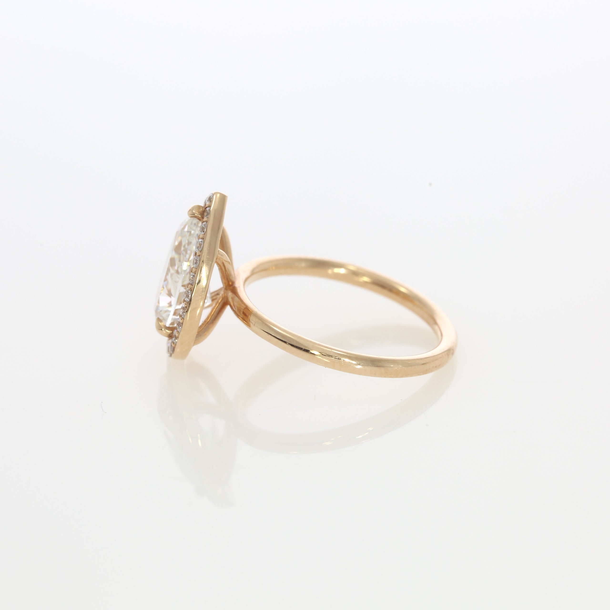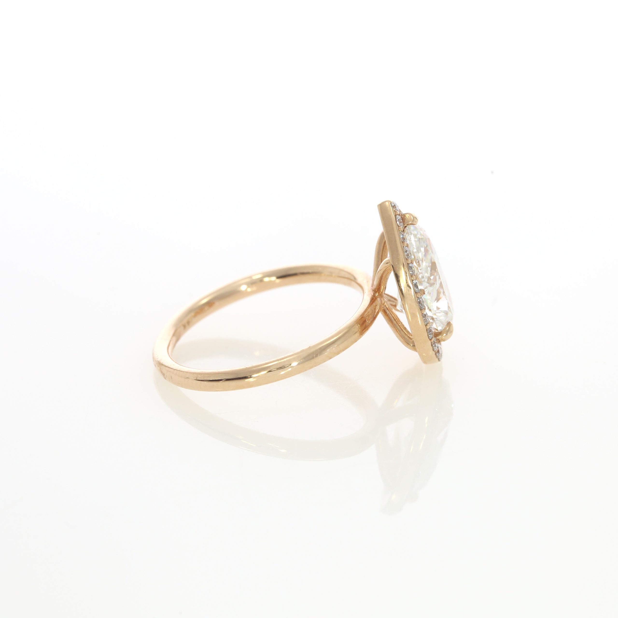 סביב היהלום המרכזי מסגרת יהלומים קטנים שמעצימה את הברק ויוצרת אפקט של זוהר מתמשך מכל זווית.