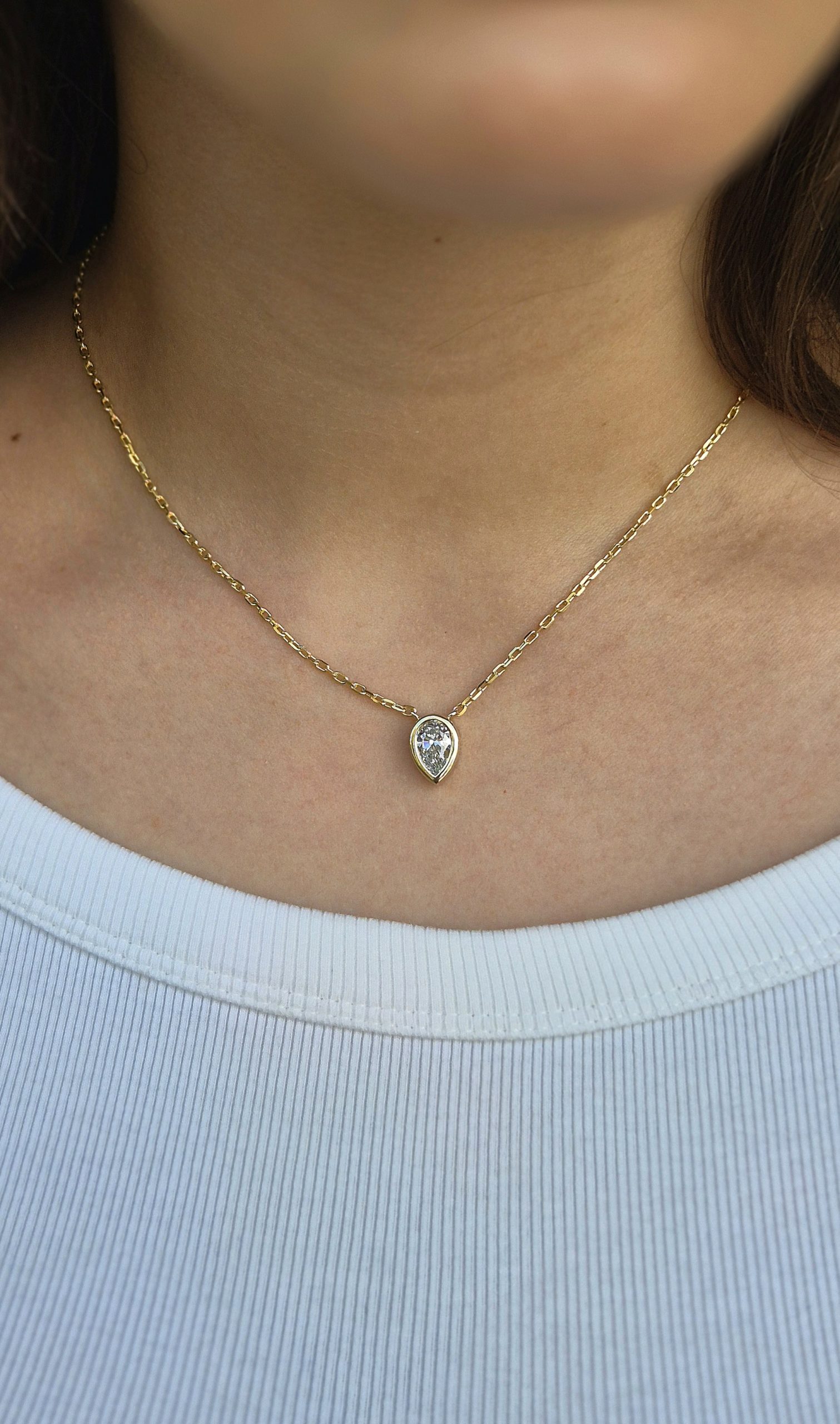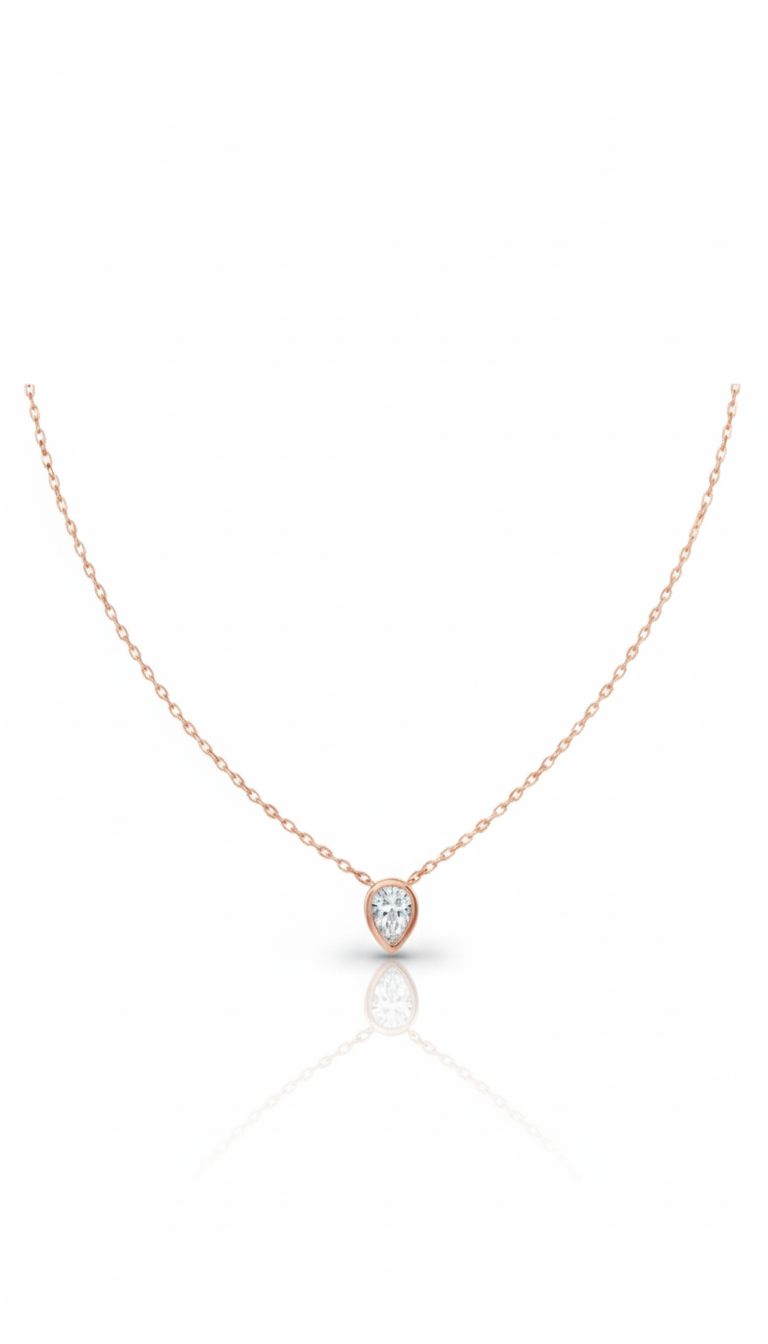 באזל היא שרשרת סוליטר מרהיבה עם יהלום מרכזי בחיתוך טיפה – המשלב בין זוהר עוצמתי לקווים מדויקים.