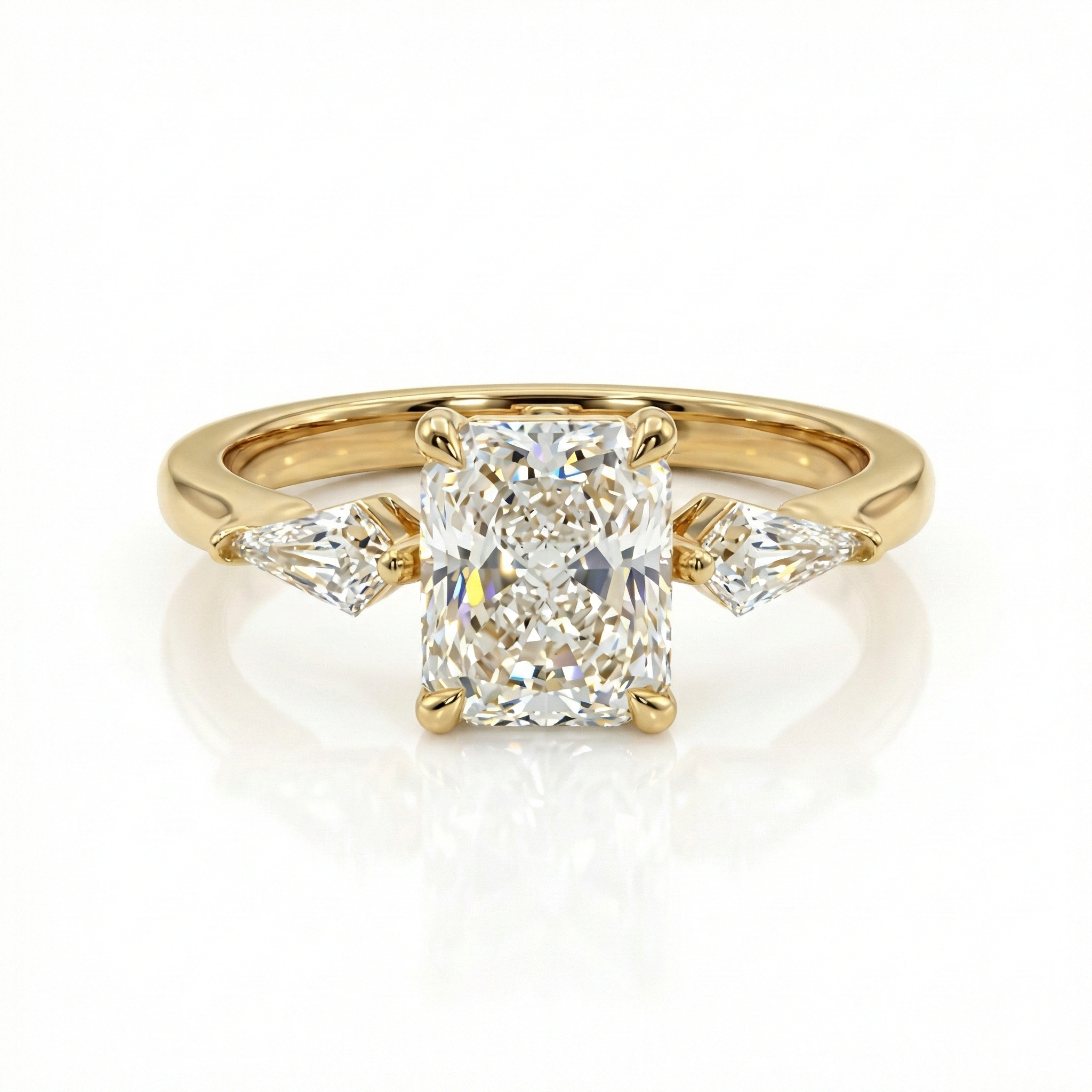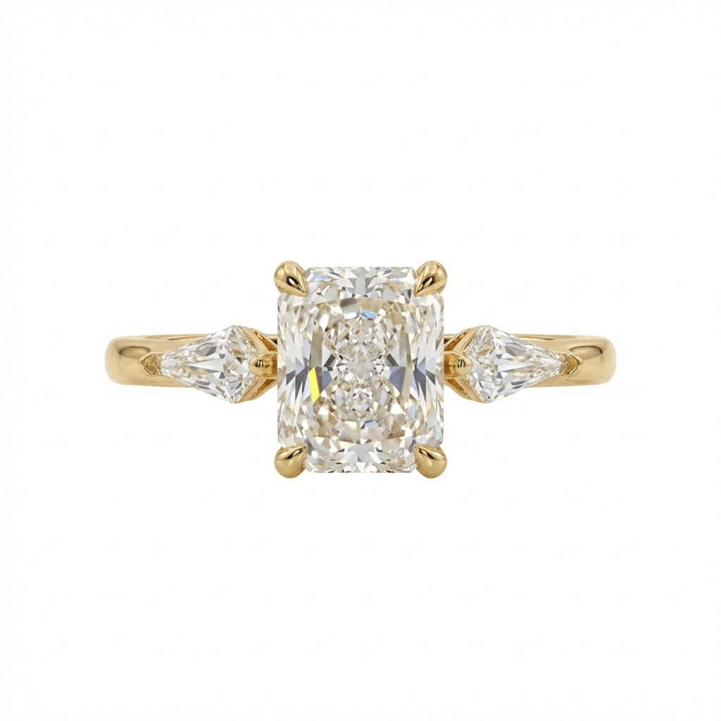 במרכז הטבעת מככבת אבן בחיתוך ראדיאן (Radiant). חיתוך זה ידוע ביכולתו לשלב בין האלגנטיות של החיתוך המרובע לבין הניצוץ האינסופי של החיתוך העגול. התוצאה היא אבן מרכזית מלאת חיים ונוכחות.
