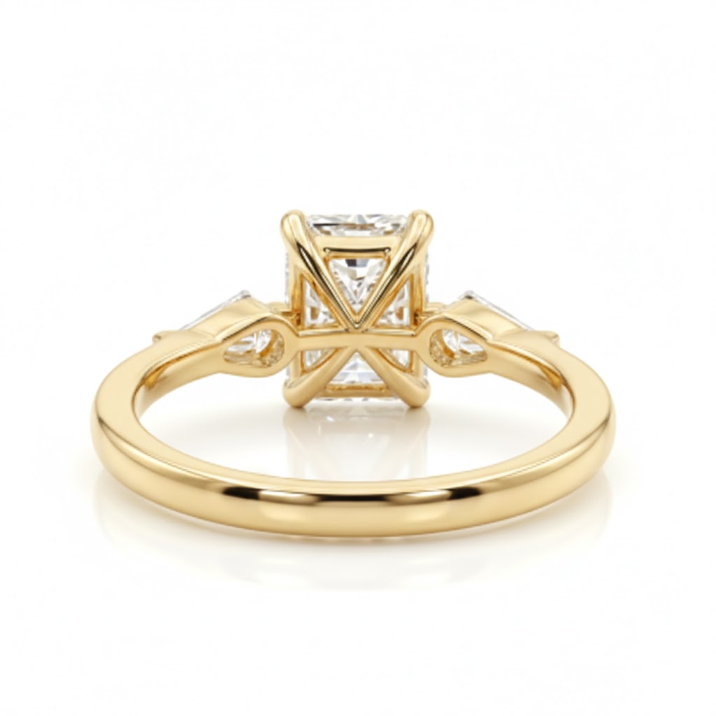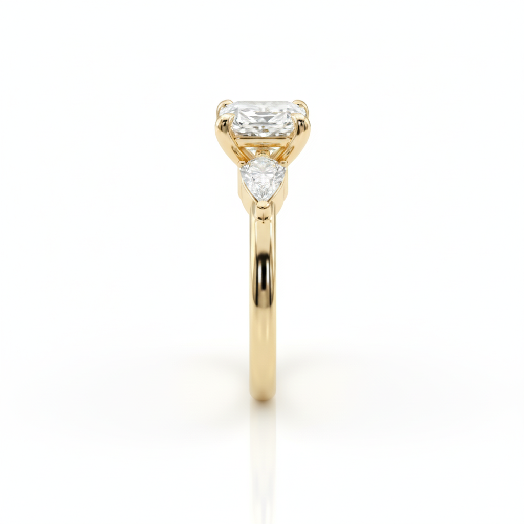 הדגם המרהיב הזה מציג פרשנות מודרנית ויוקרתית לטבעת "שלוש האבנים" (Three-stone Ring) הקלאסית, המשלבת סימטריה מושלמת עם ברק יוצא דופן.
