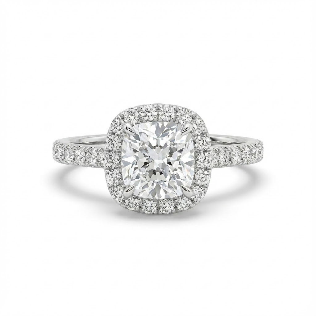 ויוויאנה היא טבעת קלאסית בעיצוב מעודן ונצחי, עם יהלום מרכזי מרשים בחיתוך קושן, המשובץ במסגרת כפולה של יהלומים קטנים ומבריקים המקיפים אותו מכל עבר.