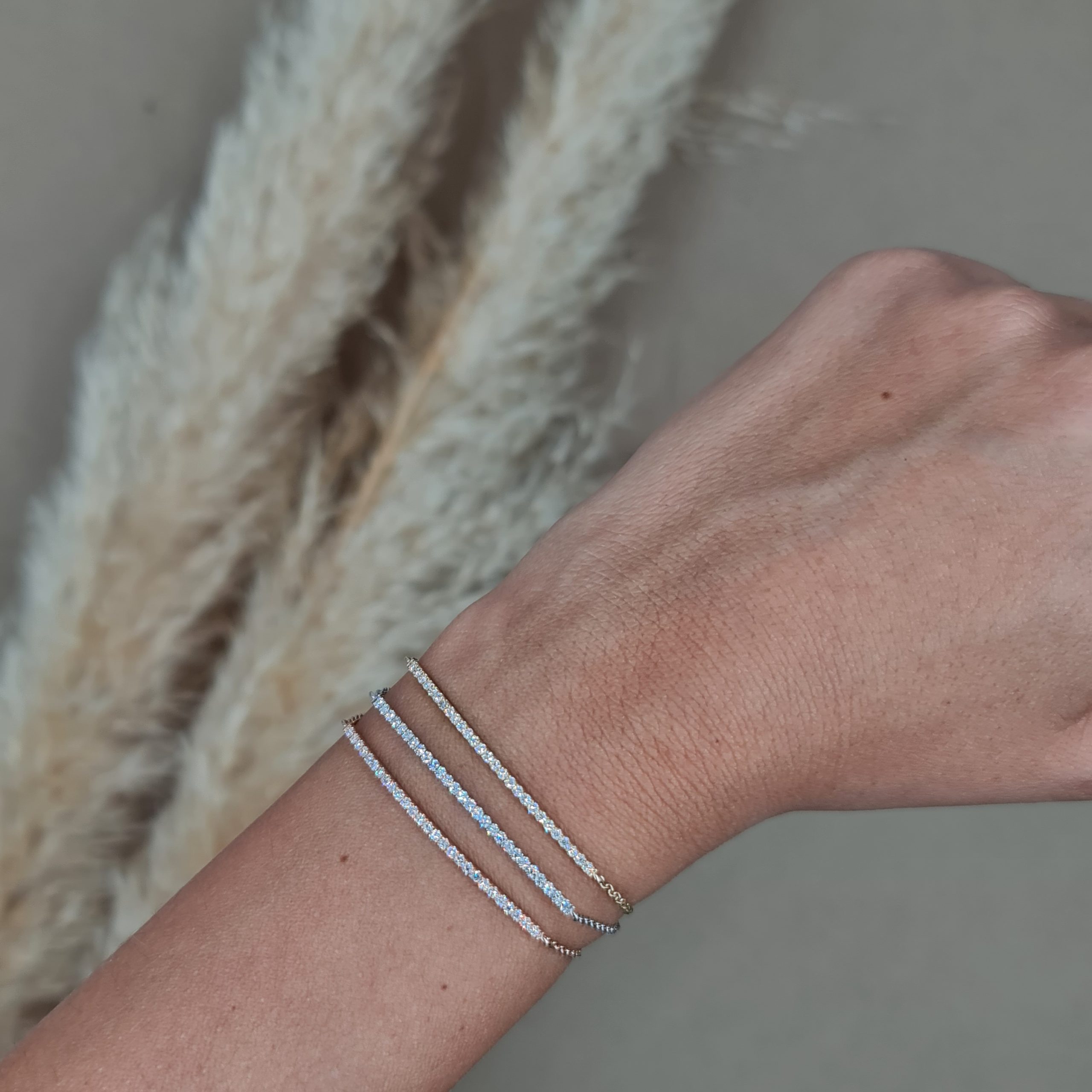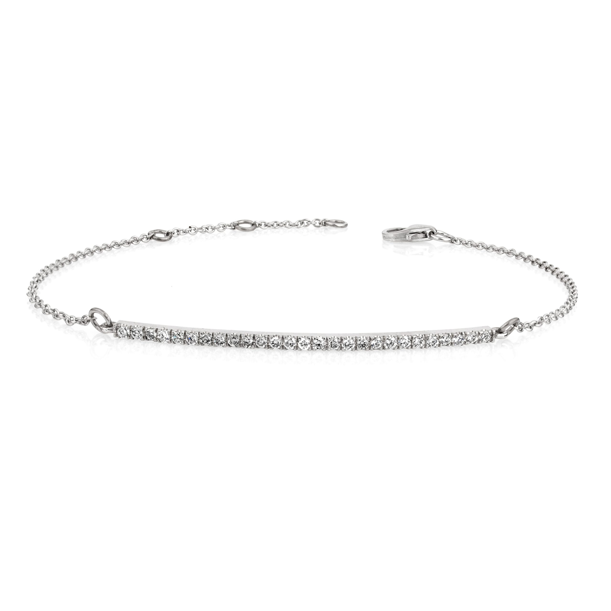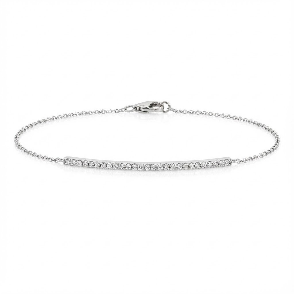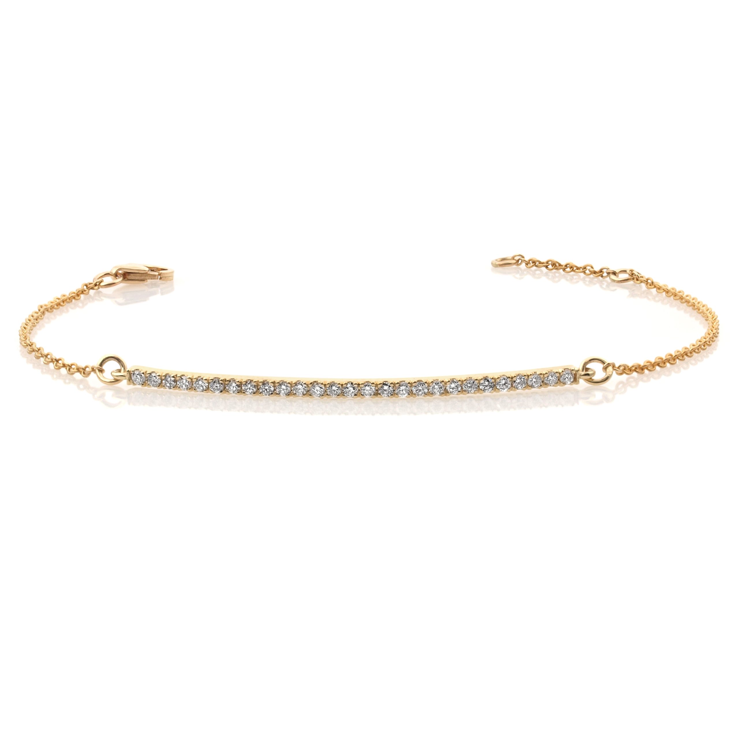 צמיד זיו מציג בר אופקי דק העטוף בשורה מדויקת של אבני יהלום נוצצות כל תנועה מלווה בגל אור רך השרשרת העדינה יוצרת תחושת קלילות על פרק היד והמתכת החמה של זהב ורוד מדגישה את הברק הקריסטלי של האבנים עיצוב זה מתאים לשילוב עם תכשיטים אחרים או ללבישה בפני עצמה