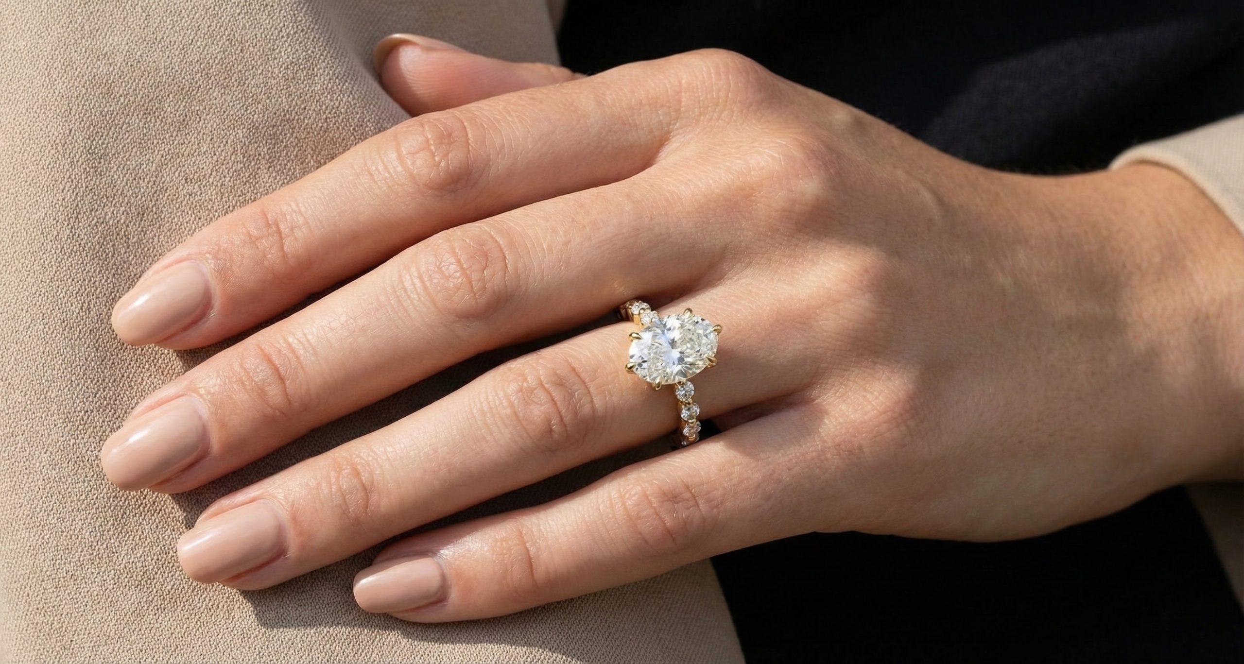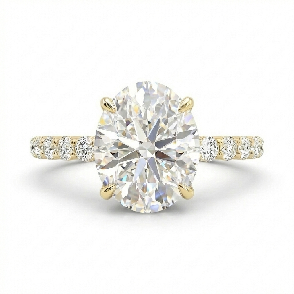 אוולין – טבעת אובל משובצת יהלומי צד – נצנוץ עדין עם יהלום מעבדה מרהיב