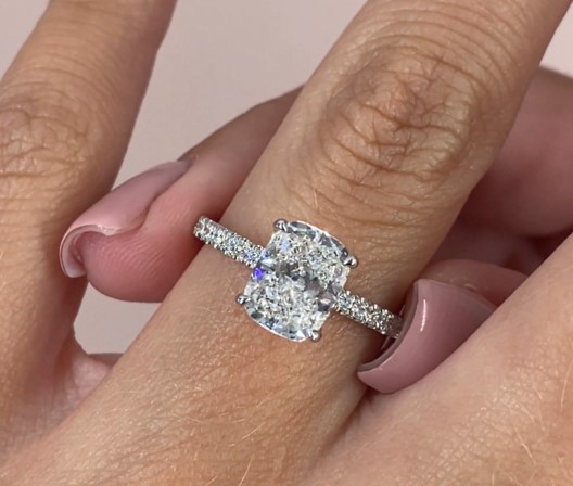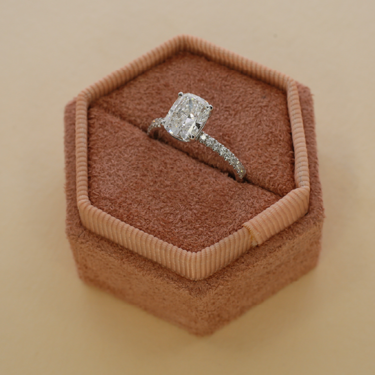טבעת אוולין קושן משובצת שורת יהלומים – רכות קלאסית עם ברק מודרני
