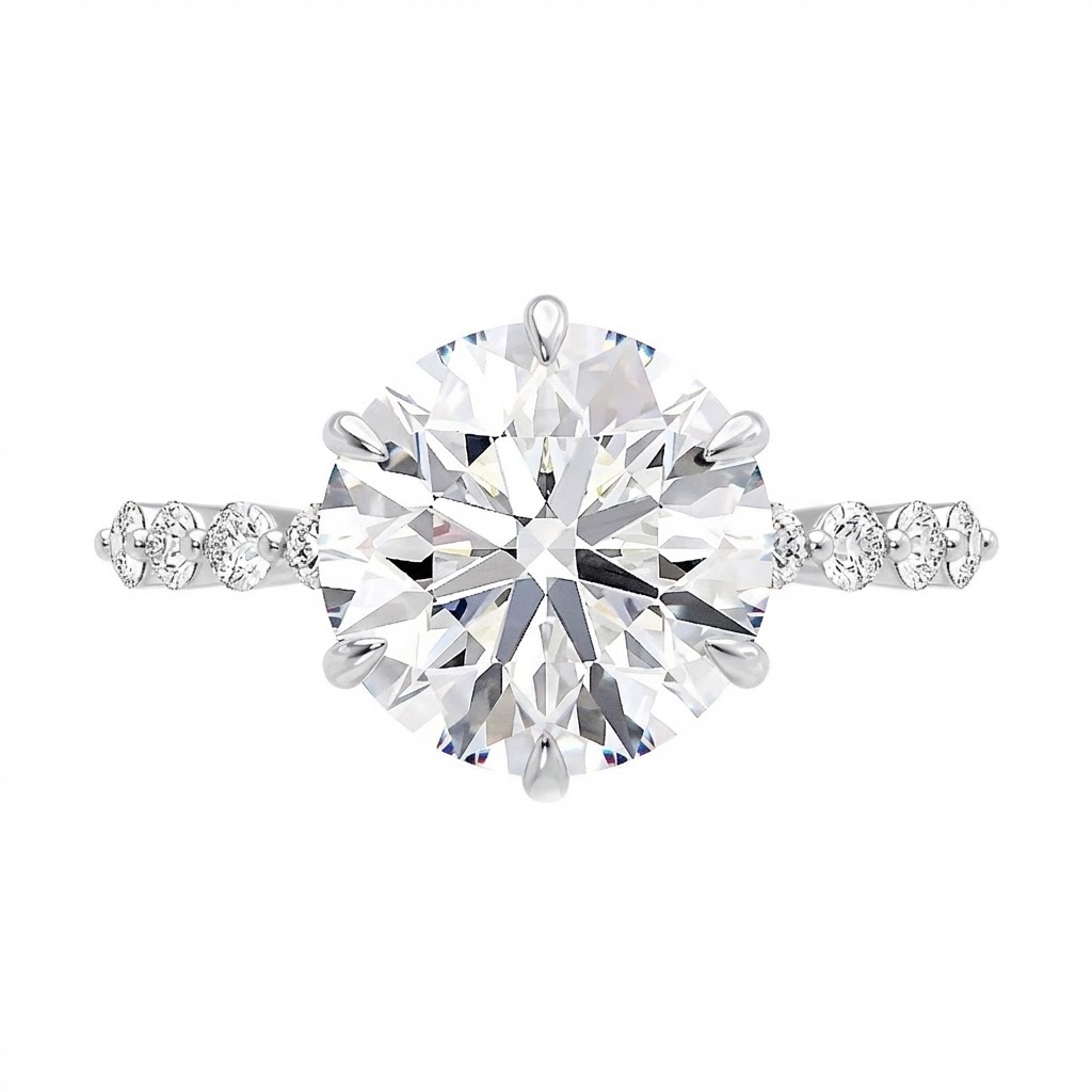 במרכזה יהלום עגול מרשים, הנתפס בשישה שיניים קלאסיות, המבליטות את האבן ומעניקות לה יציבות ונוכחות.