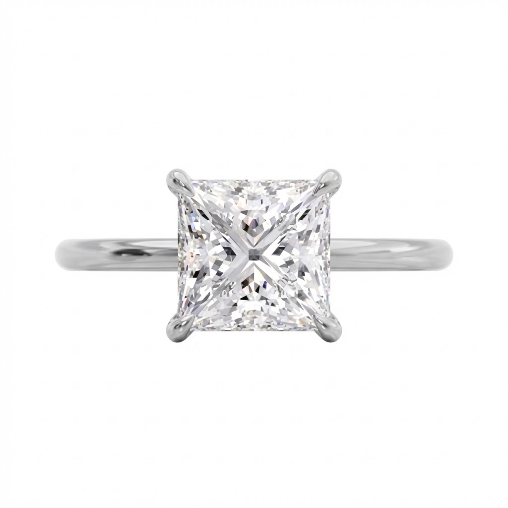 טבעת אירוסין נקייה ומדויקת, בעיצוב סוליטר אלגנטי המתמקד ביהלום פרינסס מרובע במרכז. השיבוץ הפתוח בארבע שיניים מאפשר לאור לחדור ליהלום מכל כיוון ולהעצים את הברק הטבעי שלו. טבעת על-זמנית שמתאימה בדיוק לרגעים הגדולים של החיים.