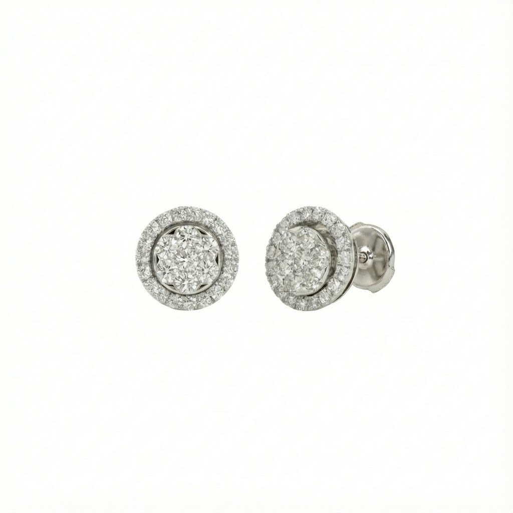 קלריון הם עגילי Majestic עגולים אלגנטיים וייחודיים בעיצובם, עם מרכז מרובה יהלומים המדמה יהלום אחד גדול ונוצץ, וסביבו הילה כפולה של יהלומים שמוסיפה ברק ועוצמה.