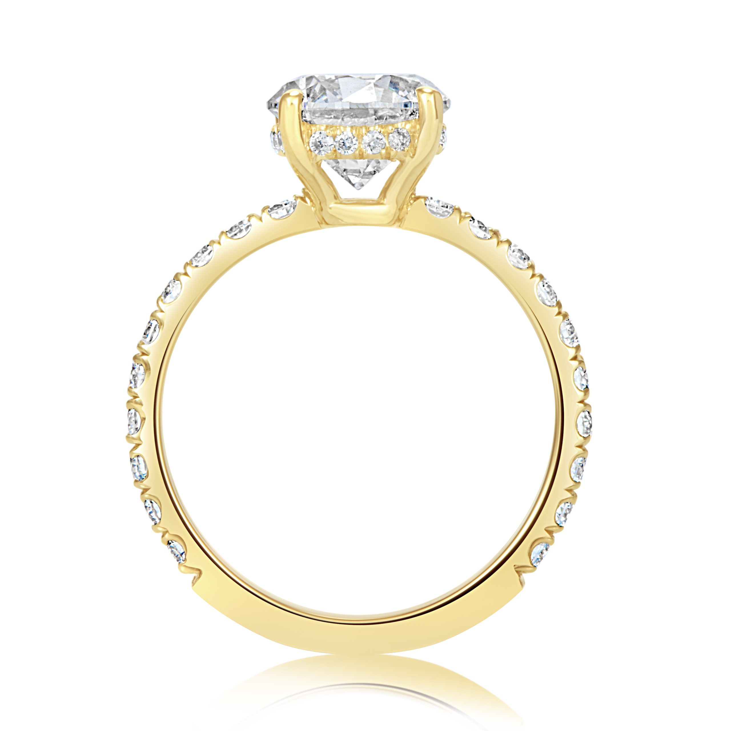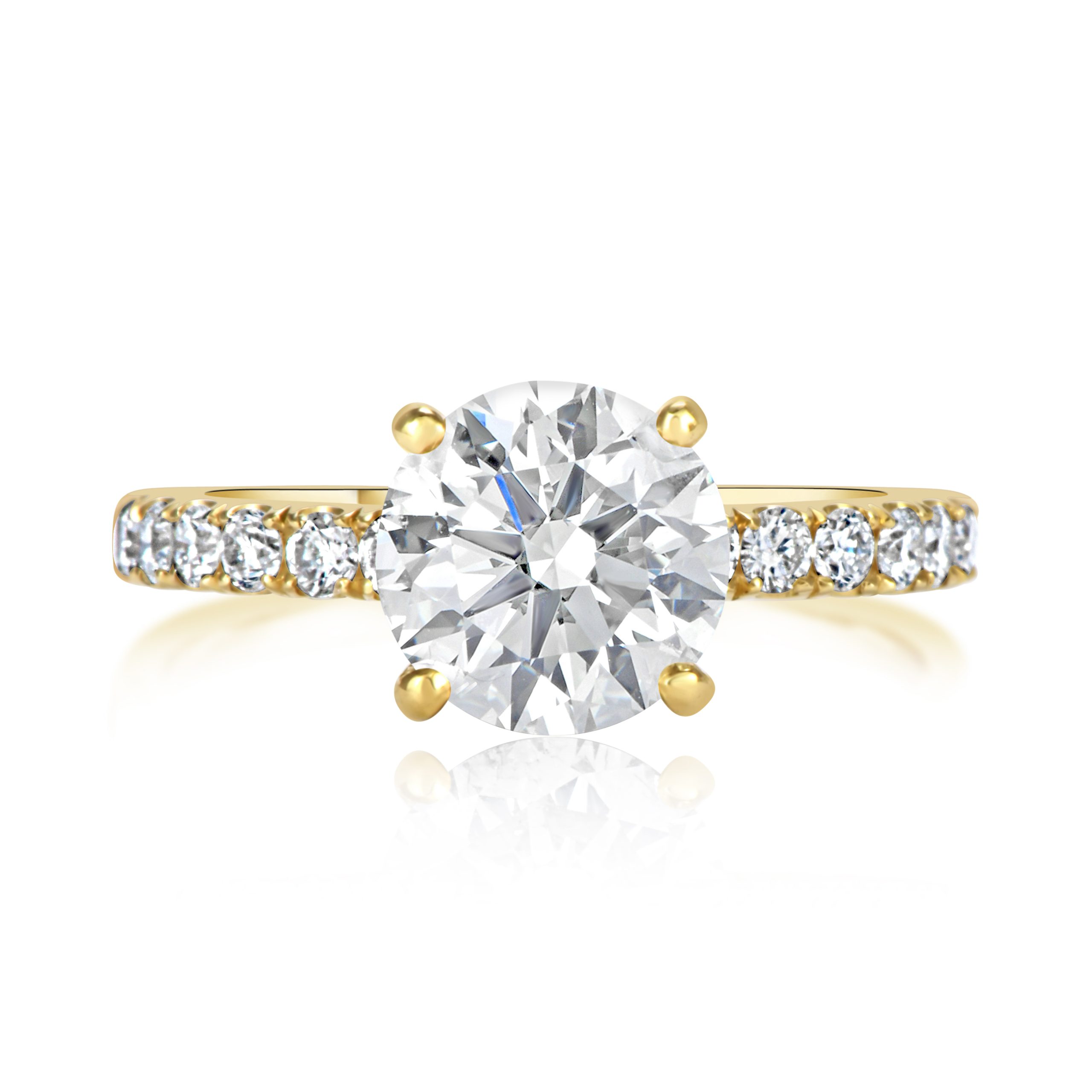 פיור היא טבעת נוצצת בעיצוב קלאסי ואלגנטי – מרכז הבמה שייך ליהלום עגול גדול ובוהק, המשובץ בארבע שיניים פתוחות המדגישות את יופיו הטבעי. גוף הטבעת מזהב צהוב מבריק משובץ יהלומים לאורך חצי היקפו, וגם מתחת ליהלום המרכזי – ליצירת אפקט זוהר מכל זווית.