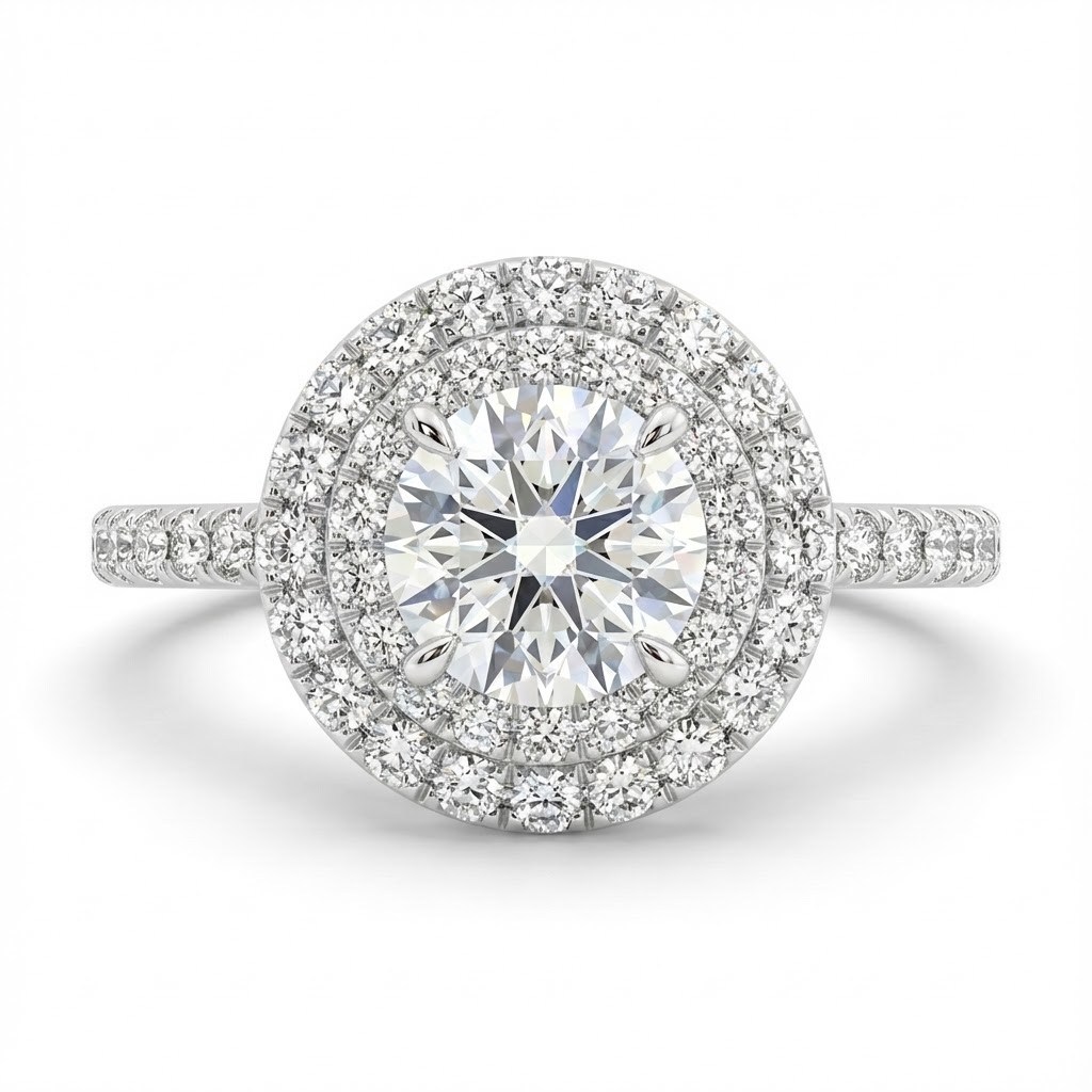 פלורינה,אלגנטיות נוצצת בלב של אור – טבעת יהלום כפולת הילה מזהב לבן