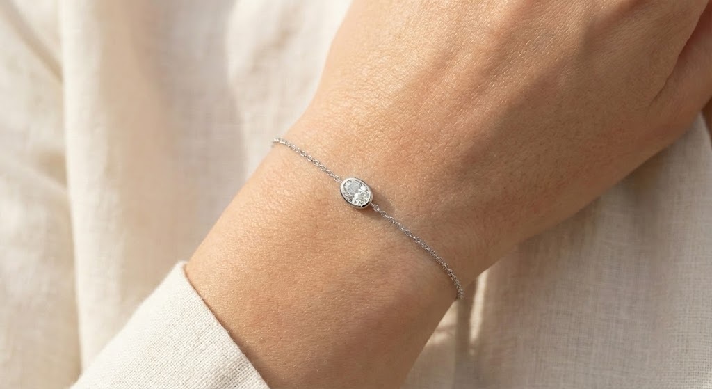 במרכזו משובץ יהלום בחיתוך אובל במסגרת סגורה – שילוב מושלם בין אלגנטיות ורכות.