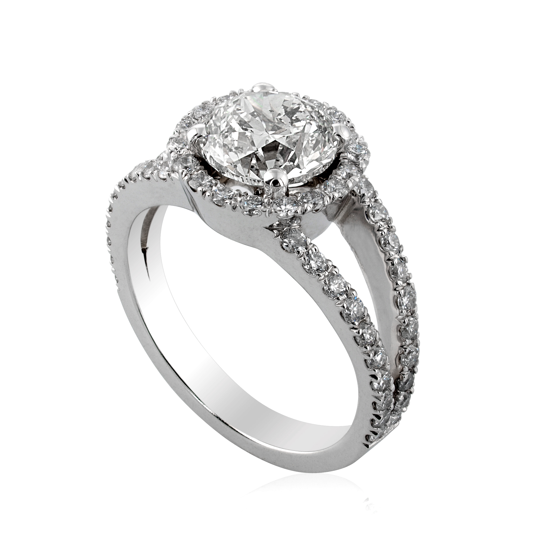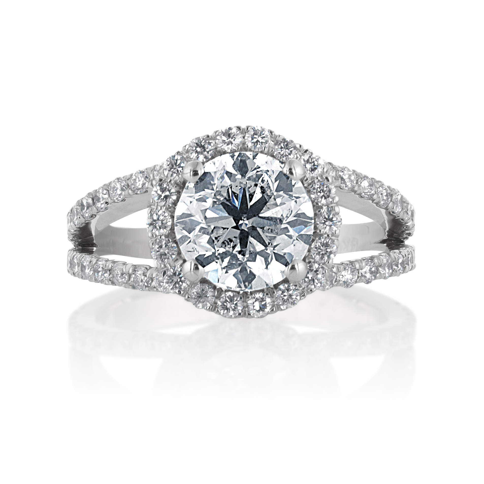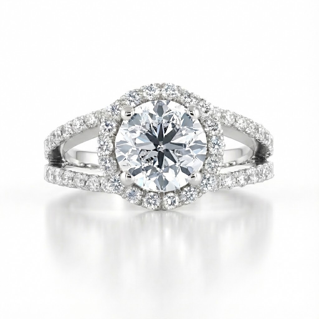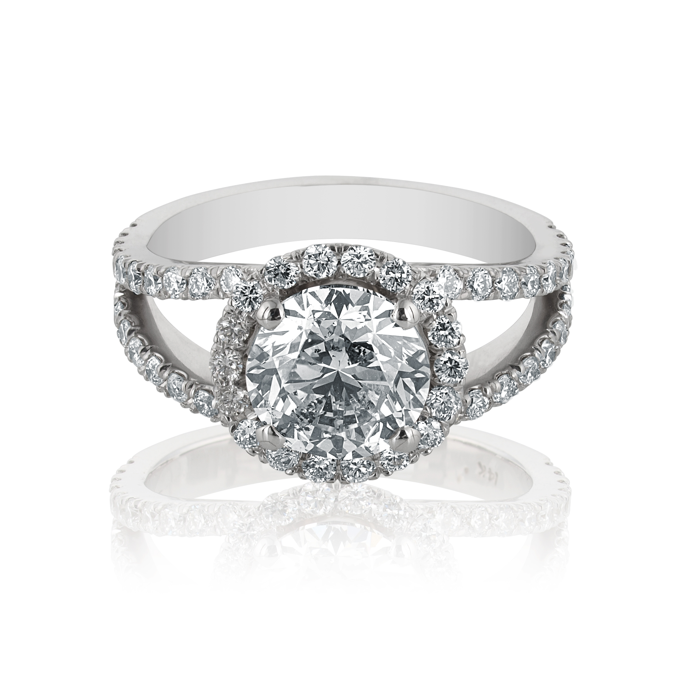 רומינה היא טבעת מעוררת רושם, בעלת עיצוב ייחודי ומוקפד. במרכזה יהלום עגול נוצץ הנתון במסגרת היילו צפופה ומרהיבה של יהלומים קטנים. הזרועות הכפולות מתפצלות בעדינות ומתמזגות בחן עם החישוק המשובץ, ליצירת מראה דינאמי ועשיר בפרטים.