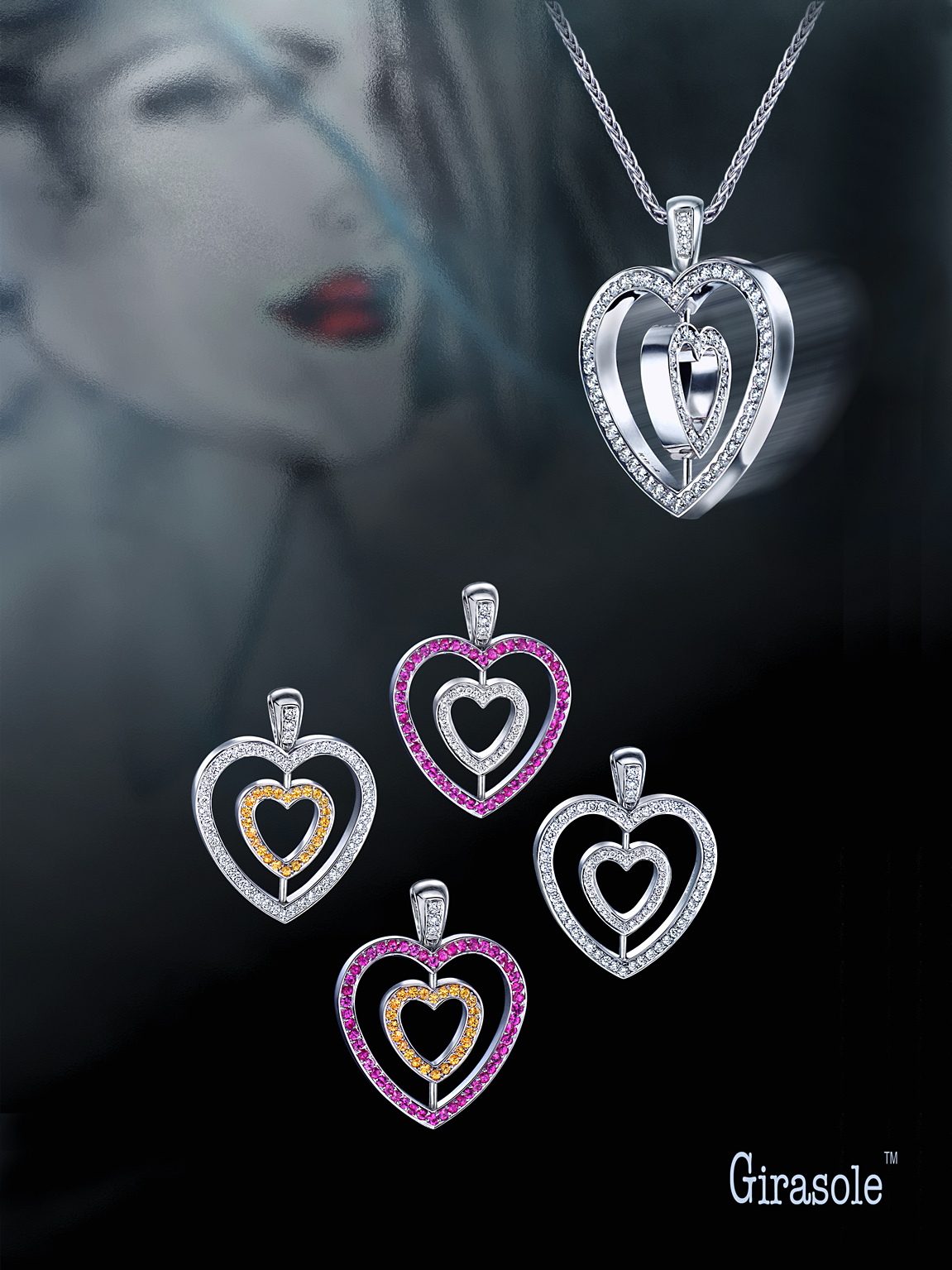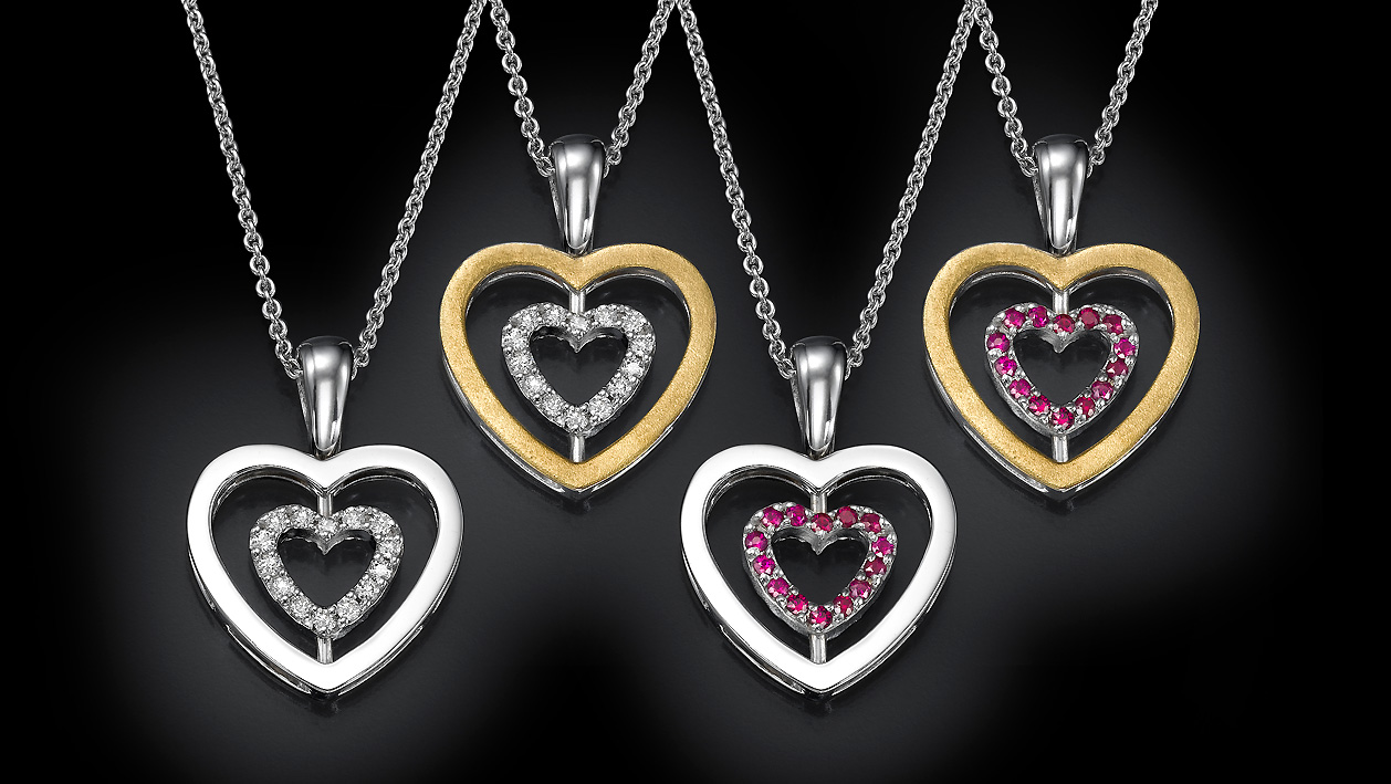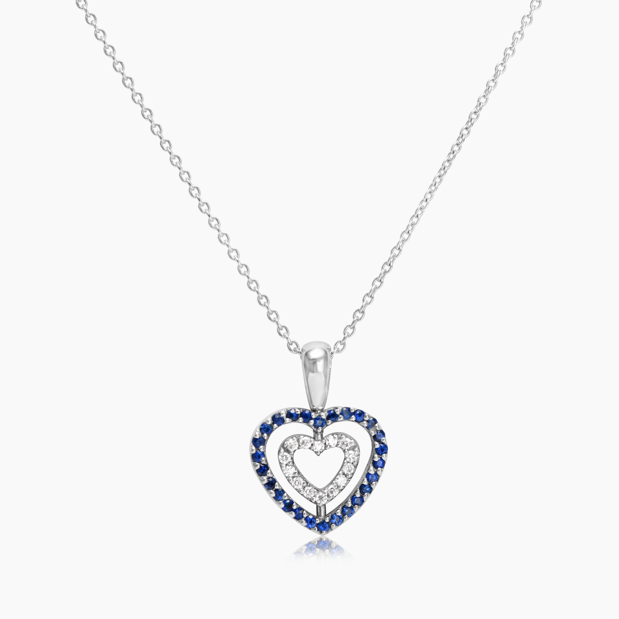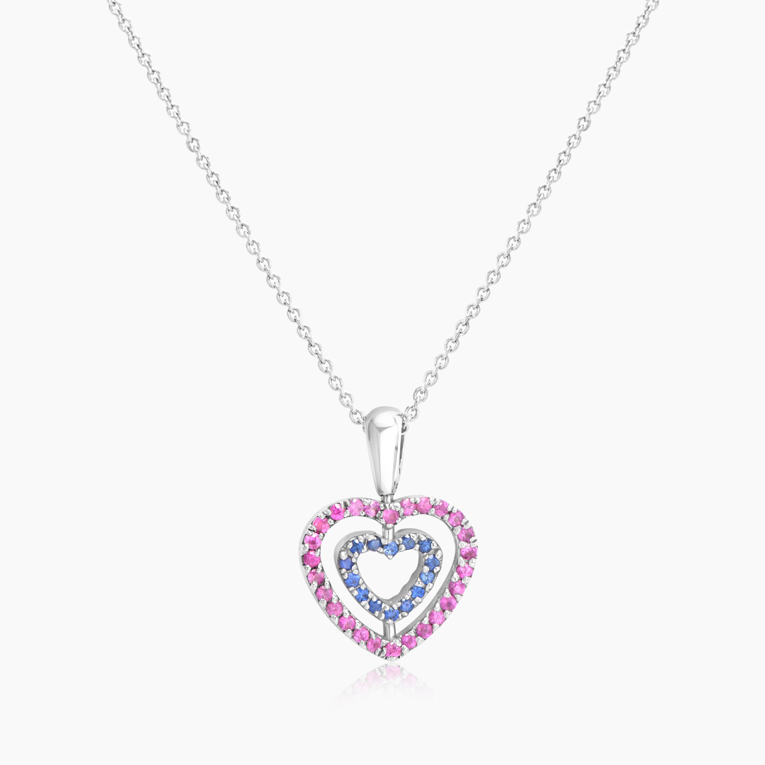 אמורית, שרשרת זהב לבן עם תליון כפול בעיצוב לב – כל צד מגלה עולם חדש של צבע ונצנוץ. הלב הפנימי והלב החיצוני משובצים באבני חן נוצצות בגוונים שונים – ורוד וכחול, כחול ולבן, או אדום ולבן – ומסתובבים בחופשיות על ציר, כך שניתן לענוד את הצד המתאים למצב הרוח או ההופעה.