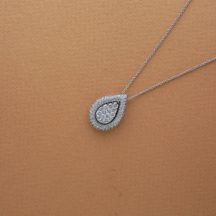 אנבלה הוא תליון Majestic מרהיב בעיצוב טיפה כפולה, המשובץ בעשרות יהלומים בוהקים ליצירת מראה מלא נוכחות וזוהר.