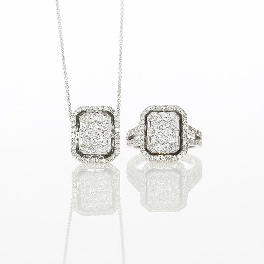 העיצוב כולל שכבה פנימית של יהלומים ליצירת מראה מרכזי מרהיב, ושכבת הילה חיצונית המדגישה את הצורה המלבנית של התליון ומוסיפה ברק ייחודי.