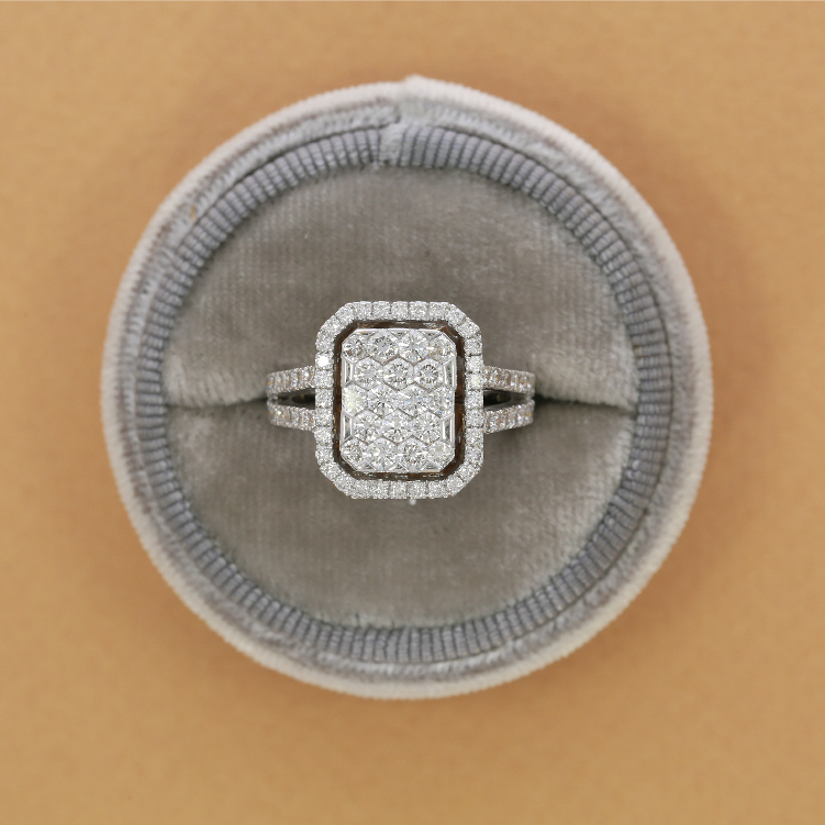 טבעת יהלומים מרובעת עם שיבוץ מלא ונוכחות מרשימה – עוצמה נשית מקולקציית מג'סטיק