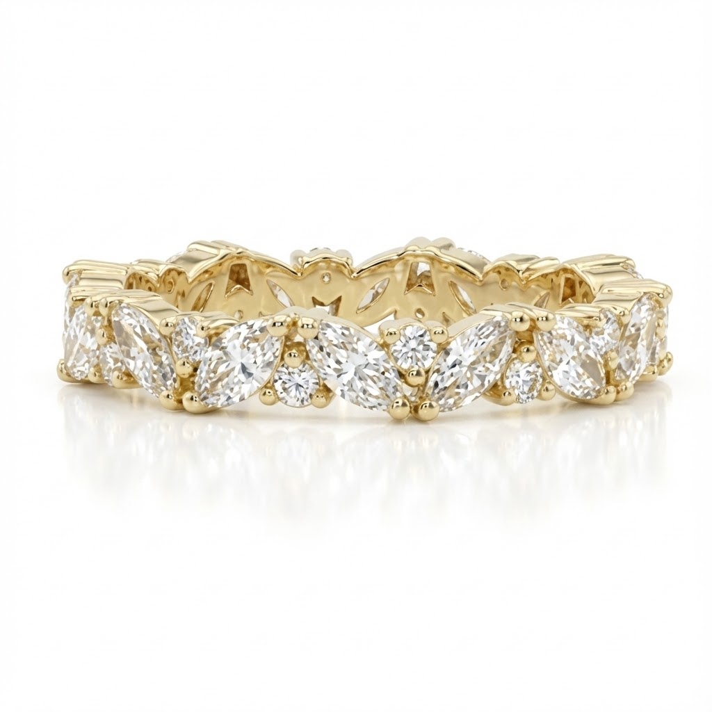 הטבעת עשויה זהב 14K/18K, וניתנת להזמנה גם בזהב לבן או רוז גולד, בשיבוץ יהלומים טבעיים או יהלומי מעבדה – לפי בחירה.