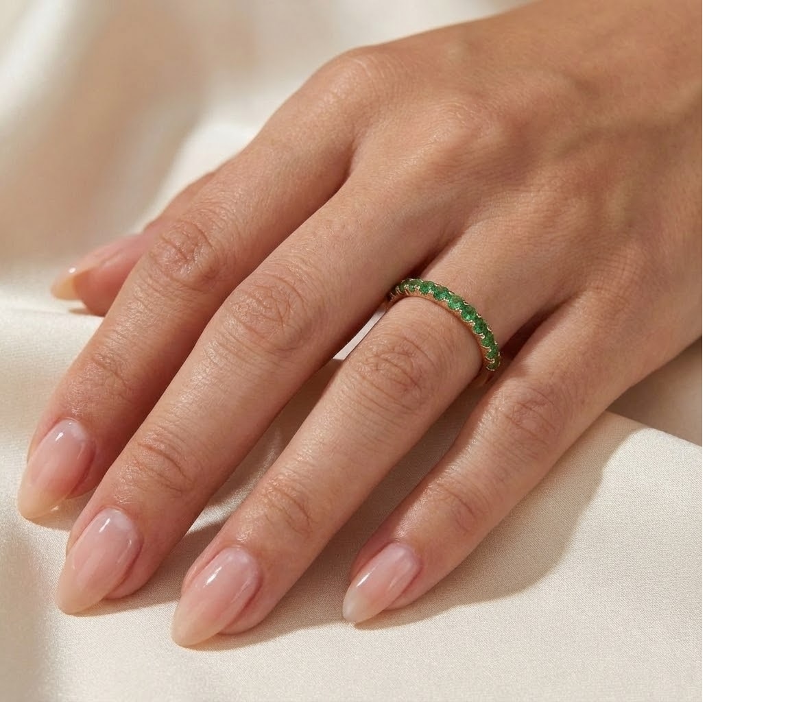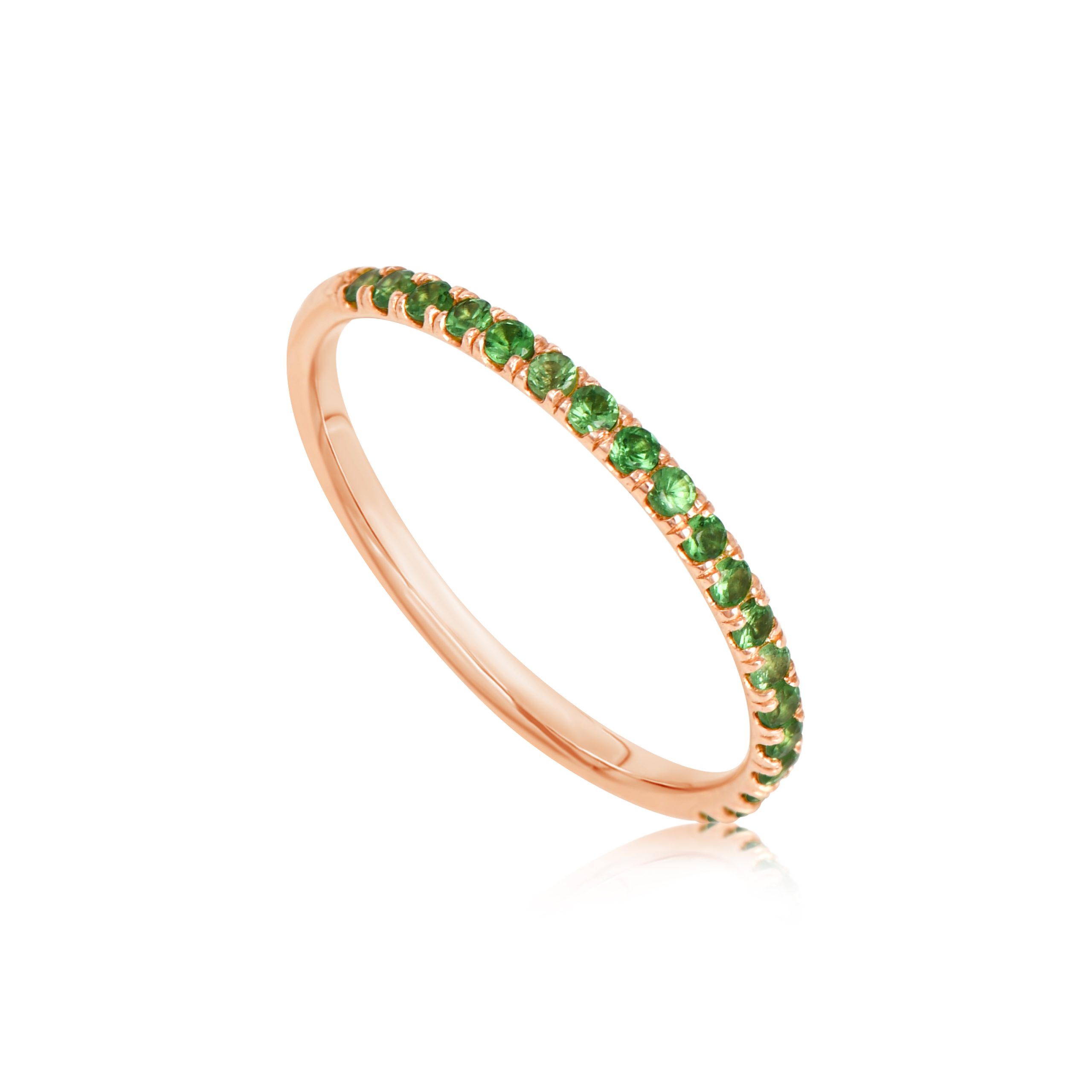 פלייר היא טבעת עדינה ואלגנטית מזהב אדום, משובצת שורת אבני טורמלין ירוקות שמשדרות חיוניות, רעננות וסטייל טבעי. העיצוב הצר והמדויק שלה מאפשר לשלב אותה עם טבעות נוספות או לענוד אותה לבד כמסגרת מושלמת ליד. בחירה מושלמת למי שמעריכה יופי טבעי בעיצוב אלגנטי.