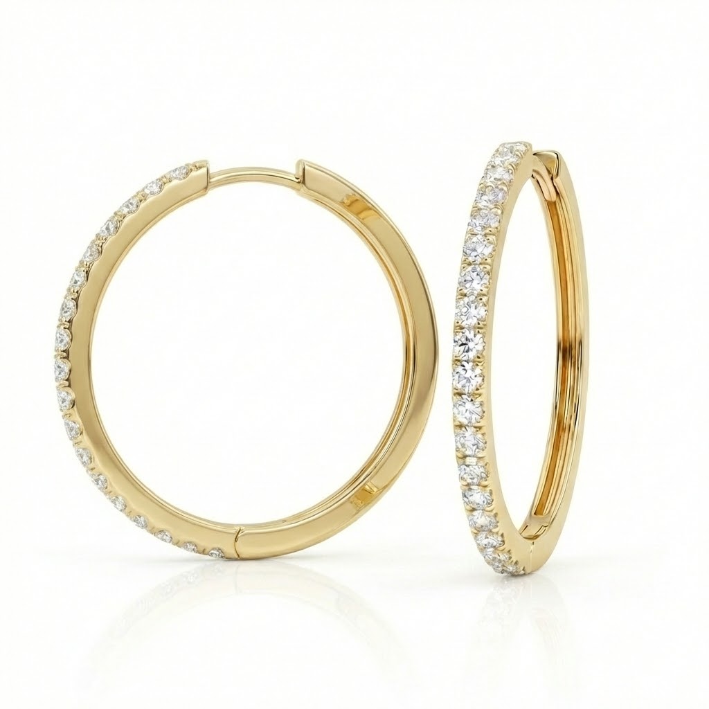 העגילים מעוצבים כך שיחמיאו לפנים מכל זווית, בשילוב של קלאסיקה ועל-זמניות, עם נגיעה מודרנית שמבדלת אותם. היהלום העגול המחבר את החישוק לאוזן מוסיף נקודת אור נוספת ומעניק המשכיות עיצובית הרמונית.