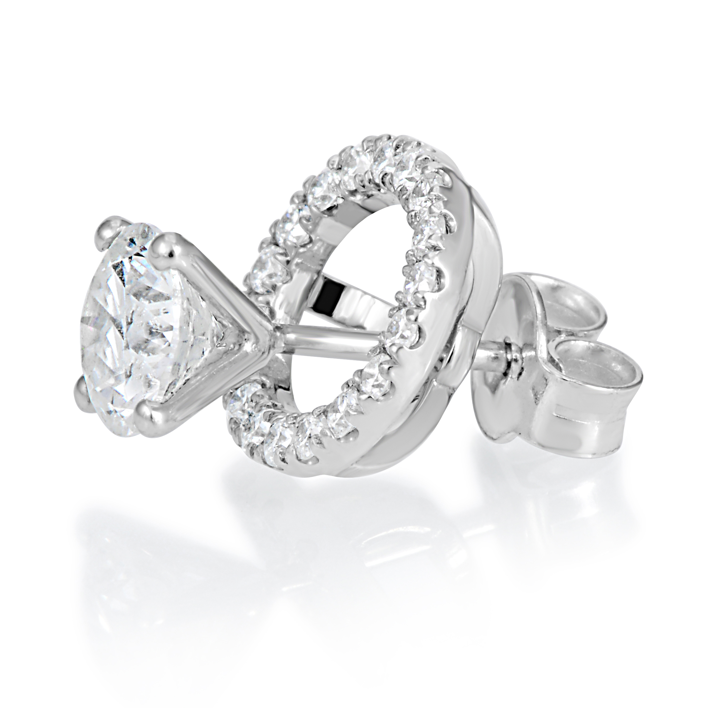 עגילי יהלומים עגולים אלגנטיים הילו, קלאסי. משובץ יהלומים עגולים עגולים במרכז ויהלומים מסביב רק שהפעם המשחק הוא שונה – בעגילי ג'ילו מתפרק את מקבלת 2 עגילים במחיר של 1! והמשמעות היא שאת יכולה לענוד אותו כעגיל סוליטר או לחבר אליו את ההילו ככה שתתאימי את העגילים ללוק שלך לאותו היום.