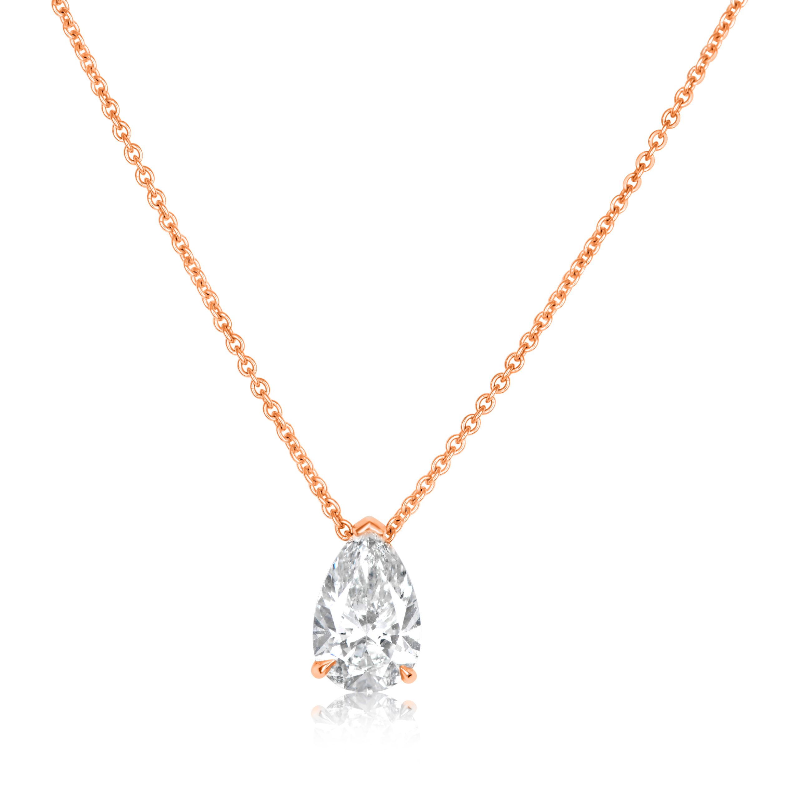 במרכזה תליון עם יהלום בחיתוך טיפה, משובץ בתפיסה עדינה של שלוש שיניים המבליטה את צורתו האלגנטית והברק שלו.