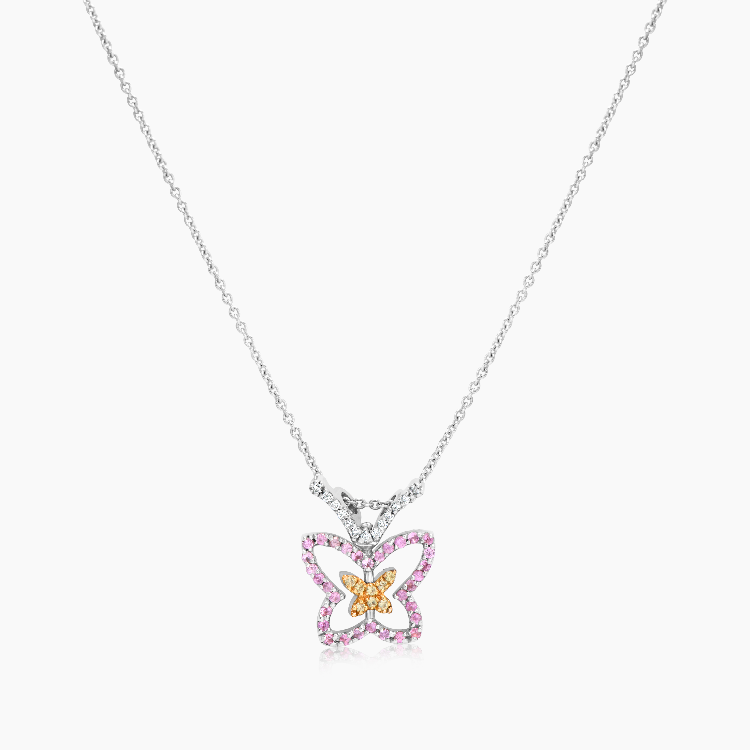 התליון משובץ בצד אחד עם יהלומים ובגרסה שנייה עם אבני חן צבעוניות – שילוב של כתום, ורוד ולבן – ומאפשר התאמה אישית לסגנון ולמצב הרוח.