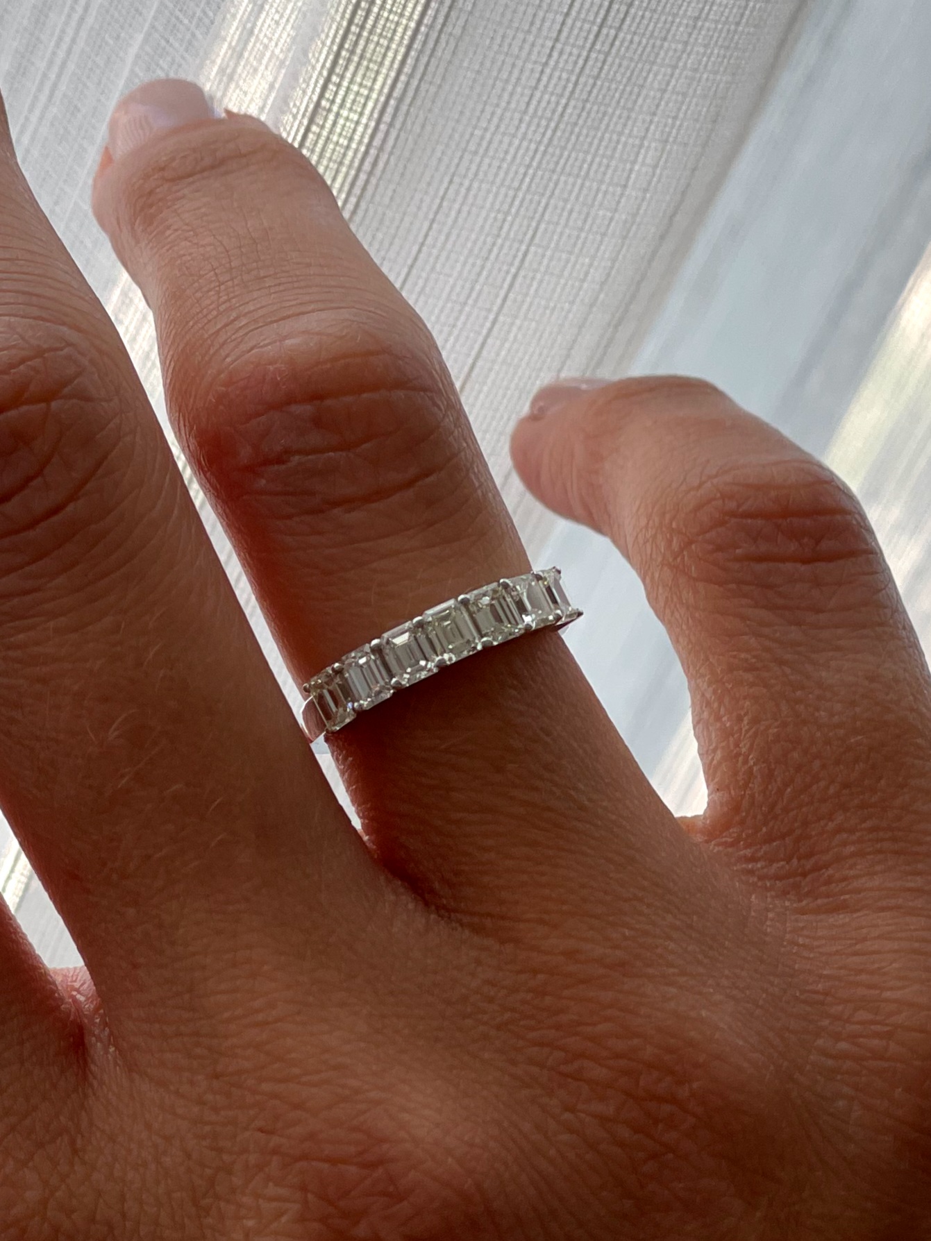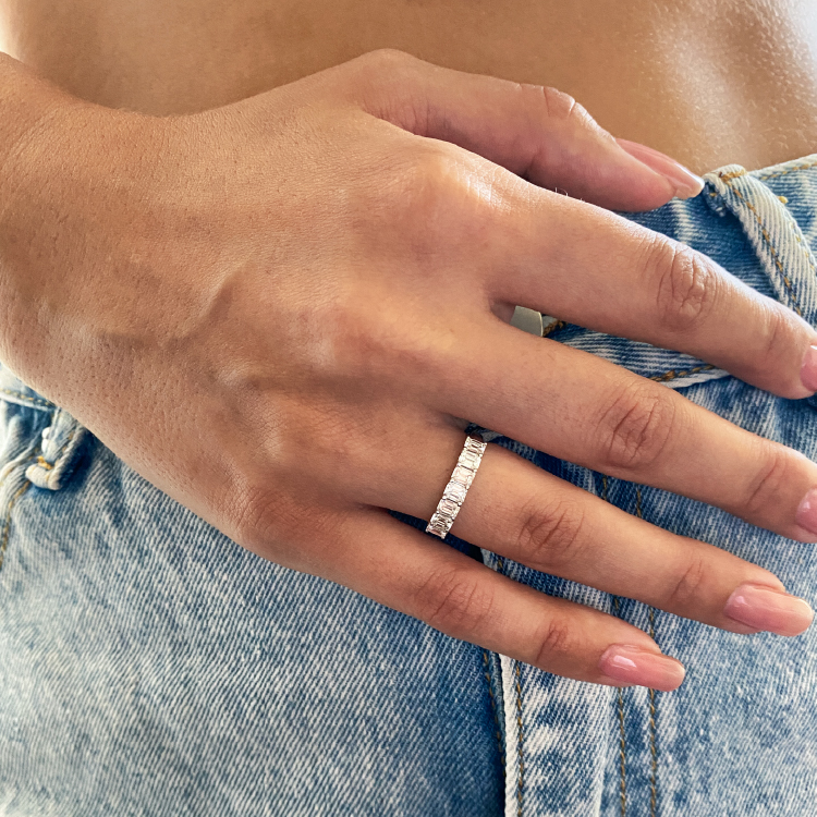 לוריה – טבעת שורת יהלומים בחיתוך אמרלד בזהב לבן – עוצמה באלגנטיות שקטה