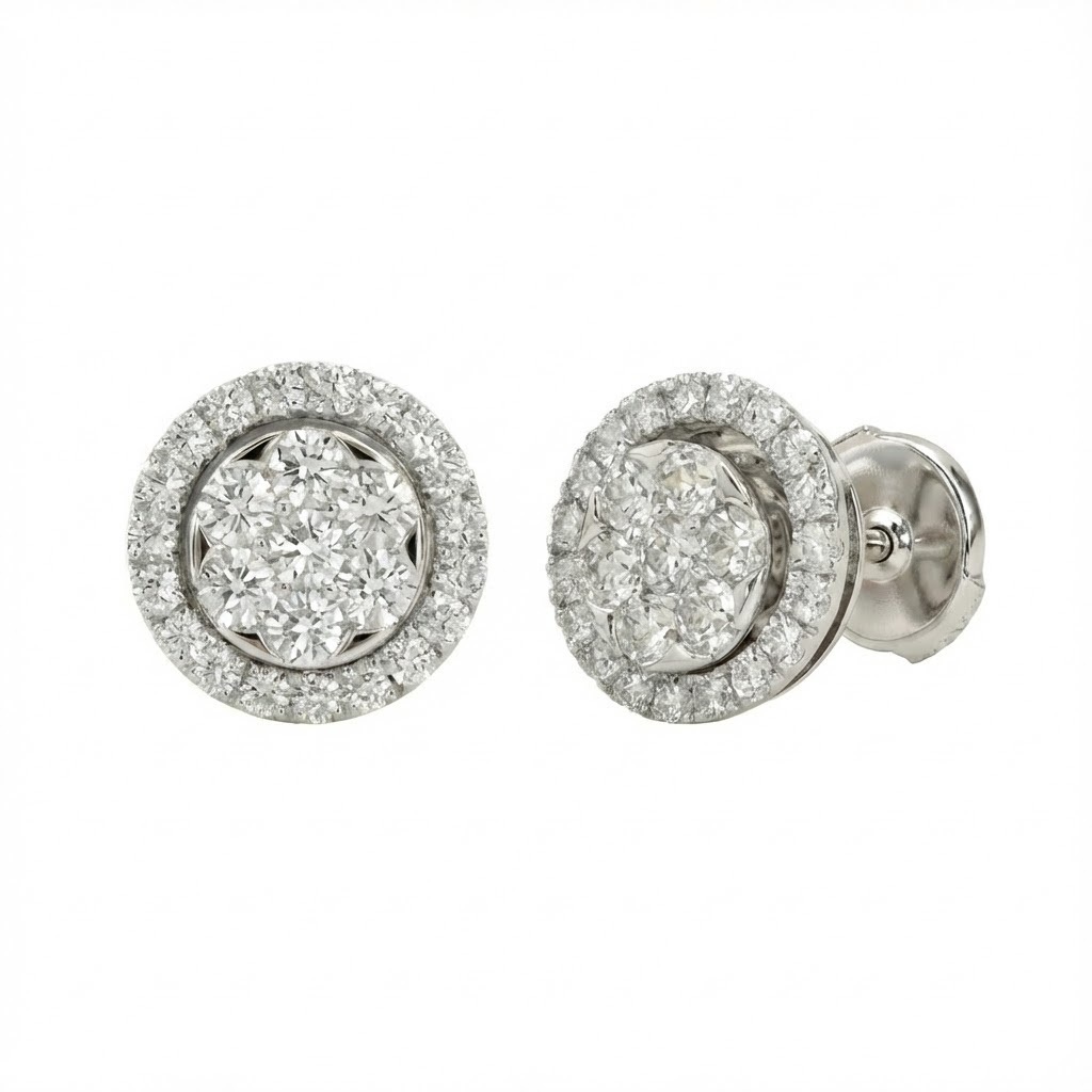 מייטלין – עגילי הילה Majestic מזהב לבן 18 קראט משדרים קסם שובה לב. במרכז כל עגיל משובצים במומחיות יהלומים עגולים קטנים בצפיפות, היוצרים יחד מראה של יהלום יחיד וגדול במיוחד. הילת יהלומים נוצצת מקיפה את המרכז ומעצימה את הזוהר הכללי. היהלומים שסביב המרכז ניתנים לפירוק ככה שאת נהנית מ2 סוגי עגילים בעגיל אחד!