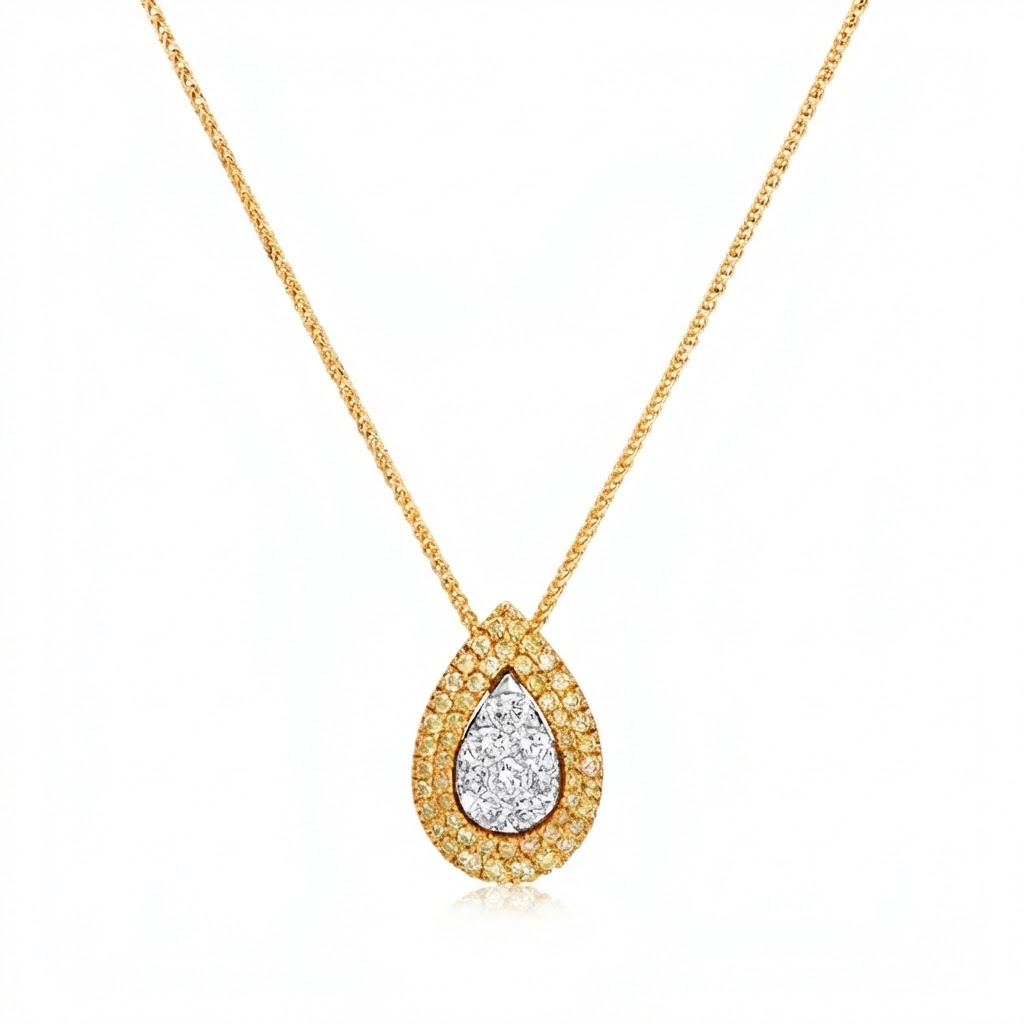 מריסול – תליון בצורת טיפה עם יהלומים צהובים ולבנים – זוהר מלא חמימות