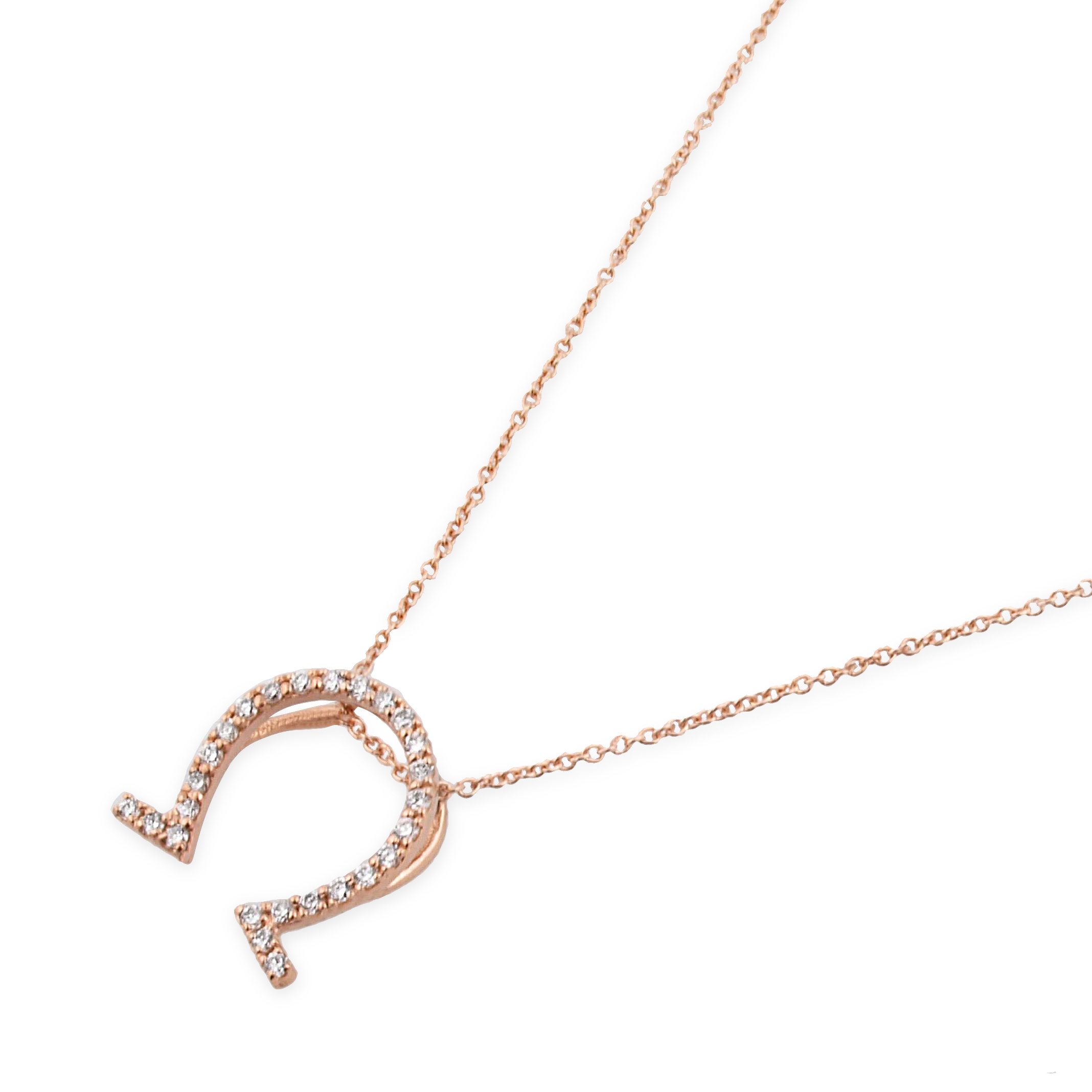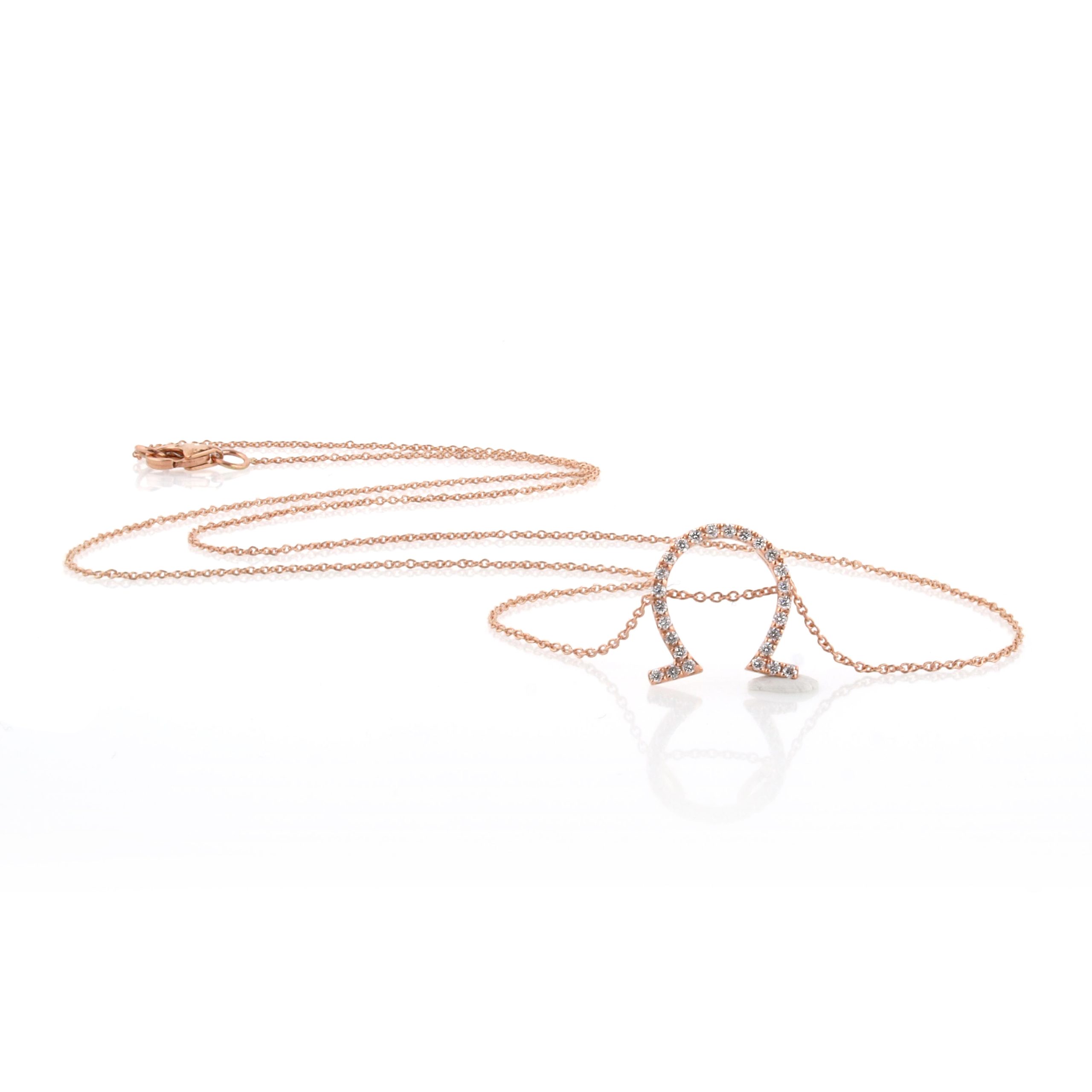 שרשרת עדינה ומלאת סטייל בזהב רוז גולד, עם תליון בצורת האות היוונית אומגה – סמל של שלמות, איזון ועוצמה נשית. התליון משובץ יהלומים קטנים שמוסיפים לו ברק אלגנטי ומודרני, ומחובר בעדינות לשני צידי השרשרת ליצירת איזון מושלם. תכשיט שמשדר נוכחות שקטה, קלאסיות עם טוויסט ואמירה אישית.