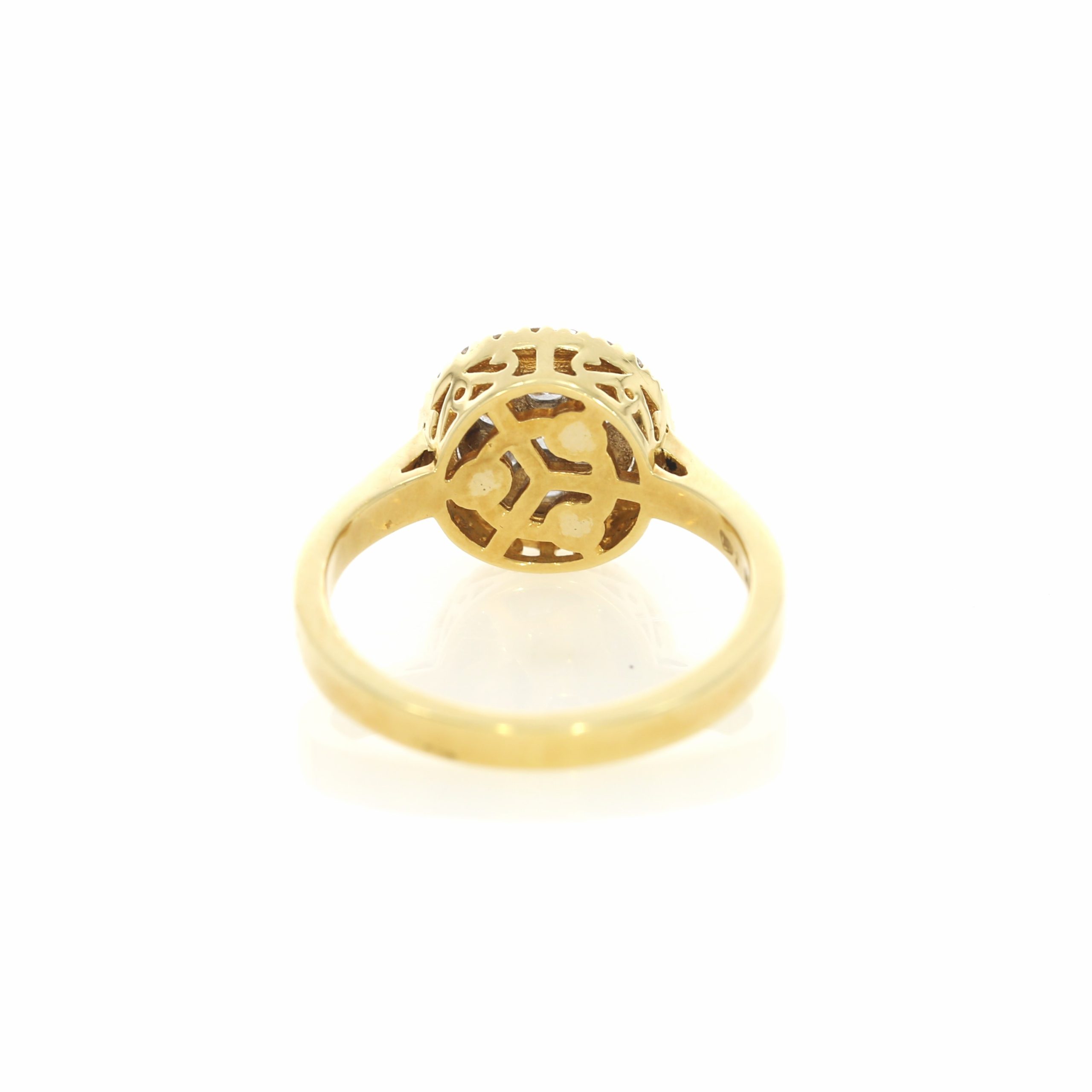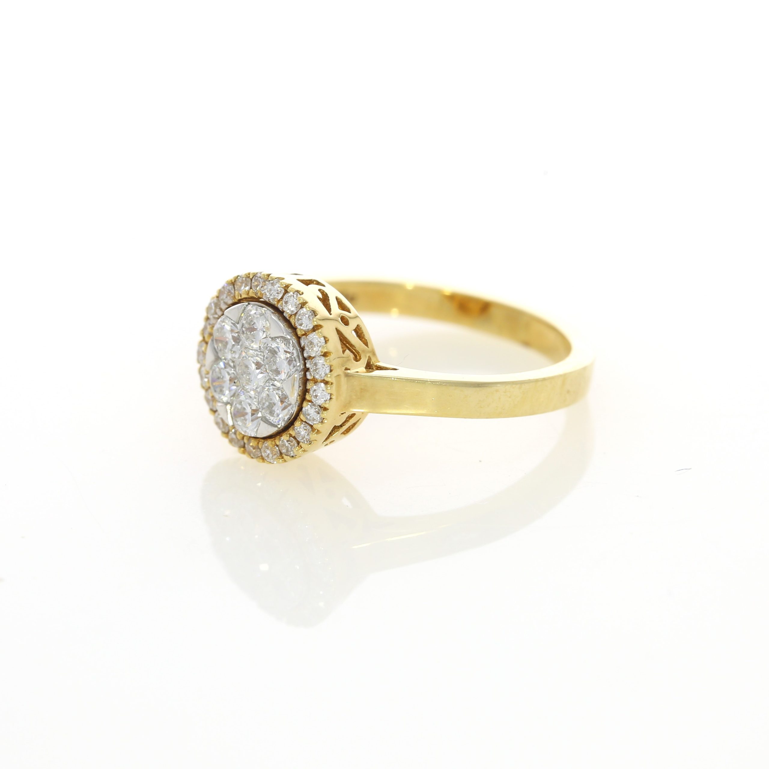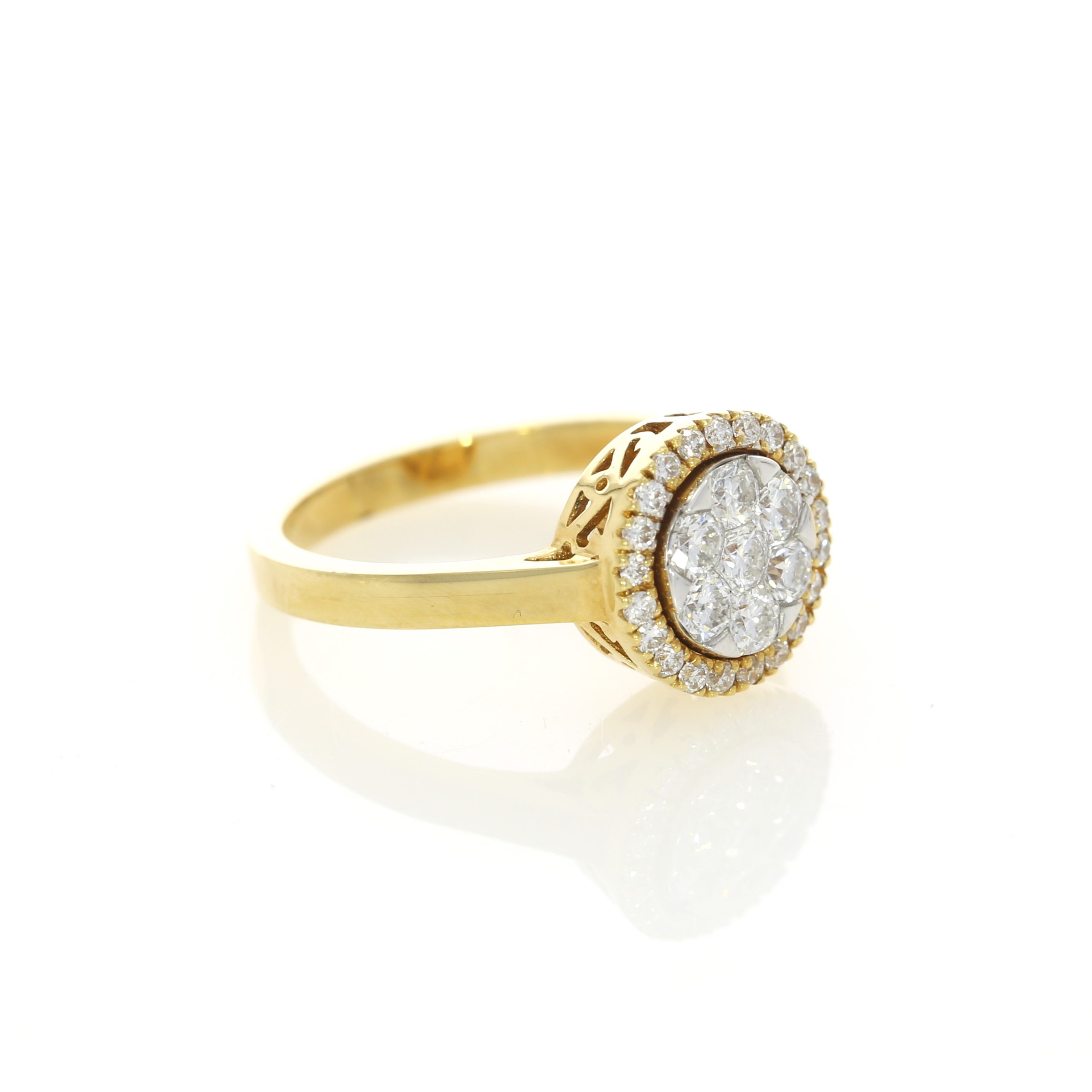 אוריאנה היא טבעת Majestic יוקרתית בעיצוב עגול יוצא דופן, המשובצת במספר יהלומים קטנים המרכיבים יחד מראה של יהלום מרכזי בוהק ומרשים.