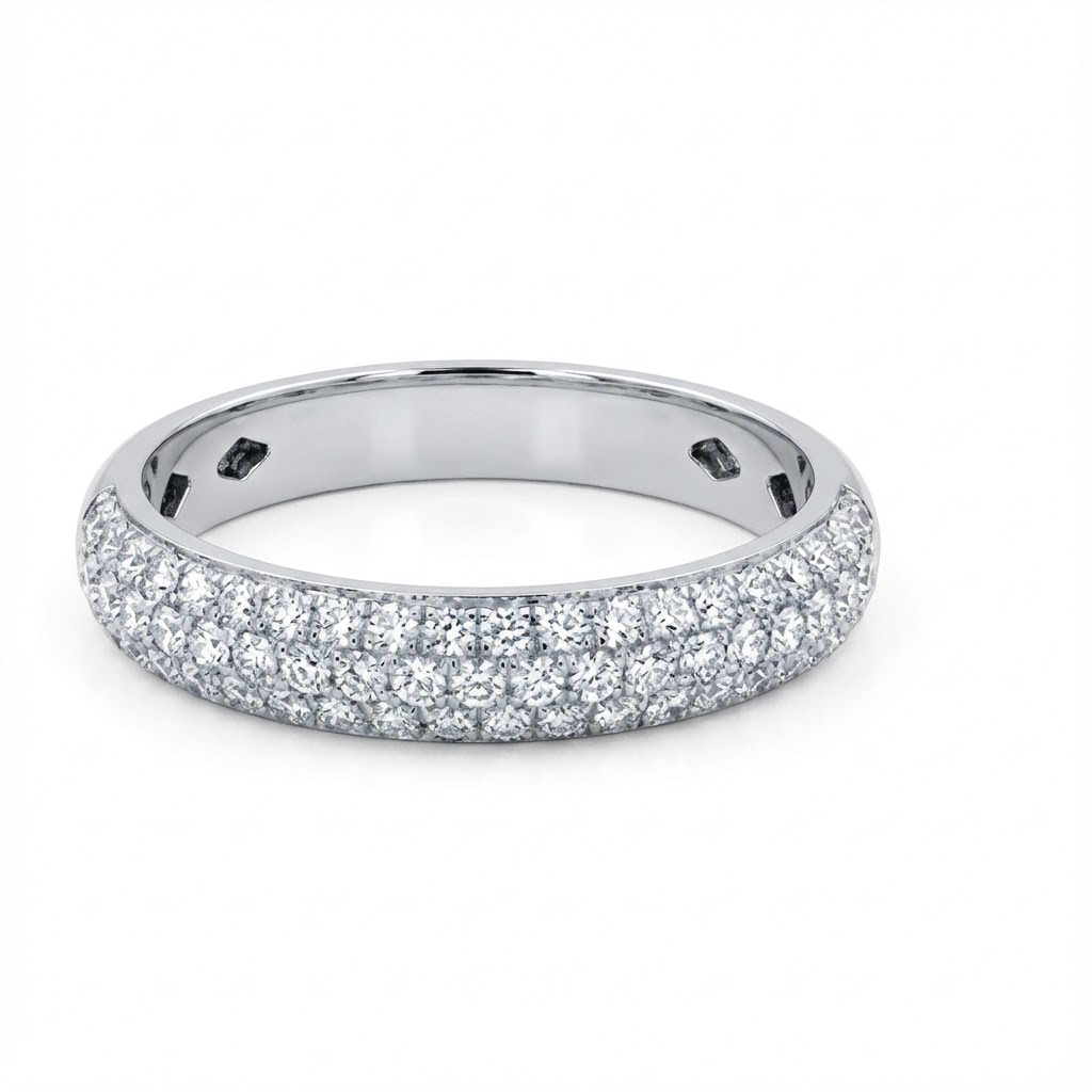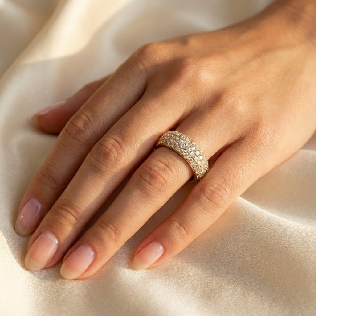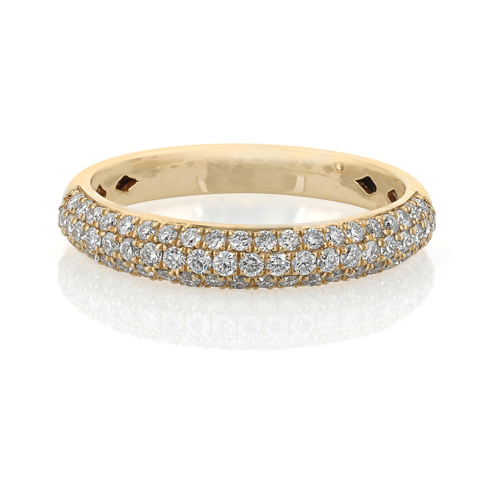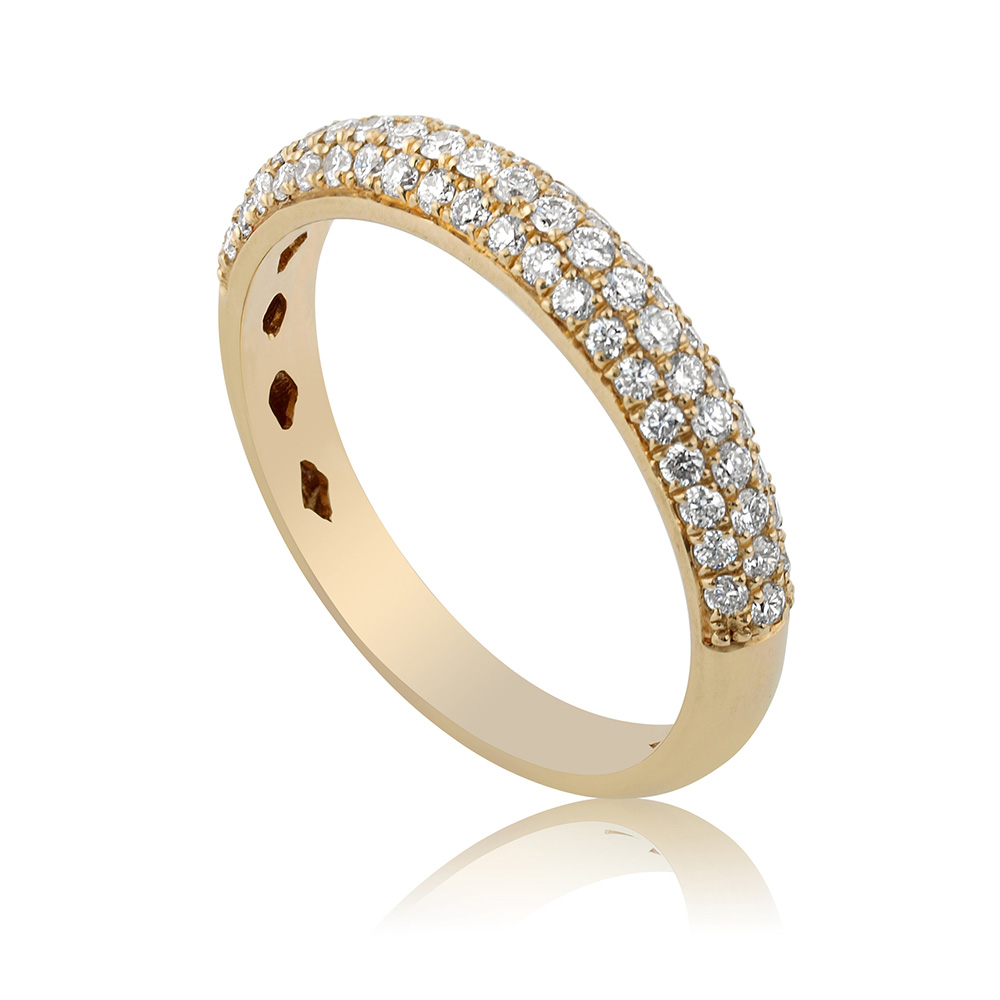 סרנלה היא טבעת זהב צהוב בעיצוב מרהיב, המשובצת בשלוש שורות עדינות של יהלומים נוצצים במראה אחיד ויוקרתי. השיבוץ המדויק של היהלומים מעניק לטבעת זוהר יוצא דופן, המדגיש את היופי של הזהב הצהוב ומוסיף נגיעה קלאסית של אלגנטיות.