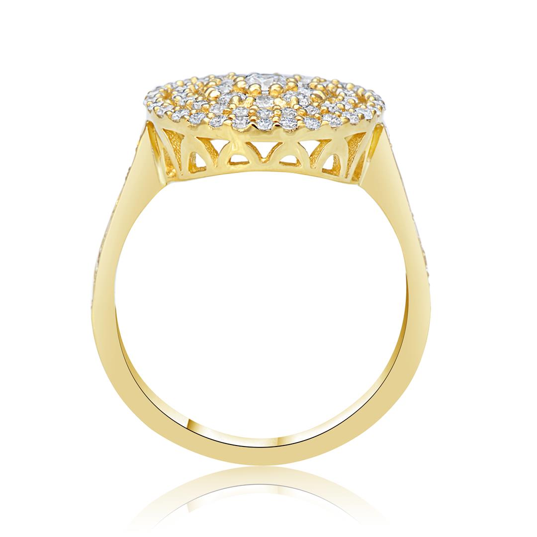 העיצוב הסימטרי והמדויק מעניק לטבעת תחושת איזון ורכות, בעוד זהב צהוב מחמיא מדגיש את היהלומים ומוסיף חמימות מלכותית. הזרוע של הטבעת משובצת גם היא לכל אורכה, להשלמת המראה היוקרתי.