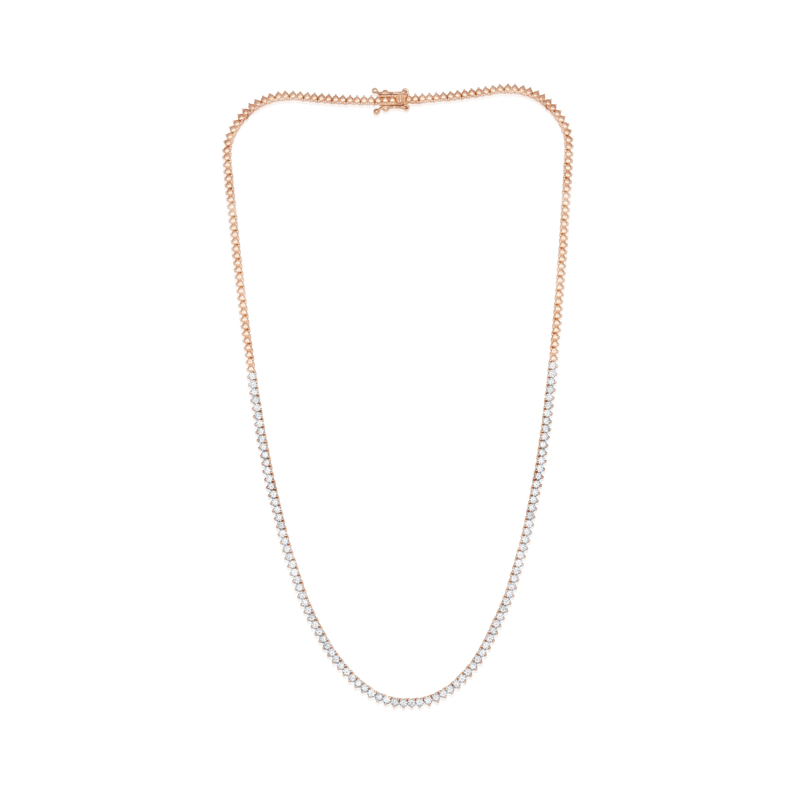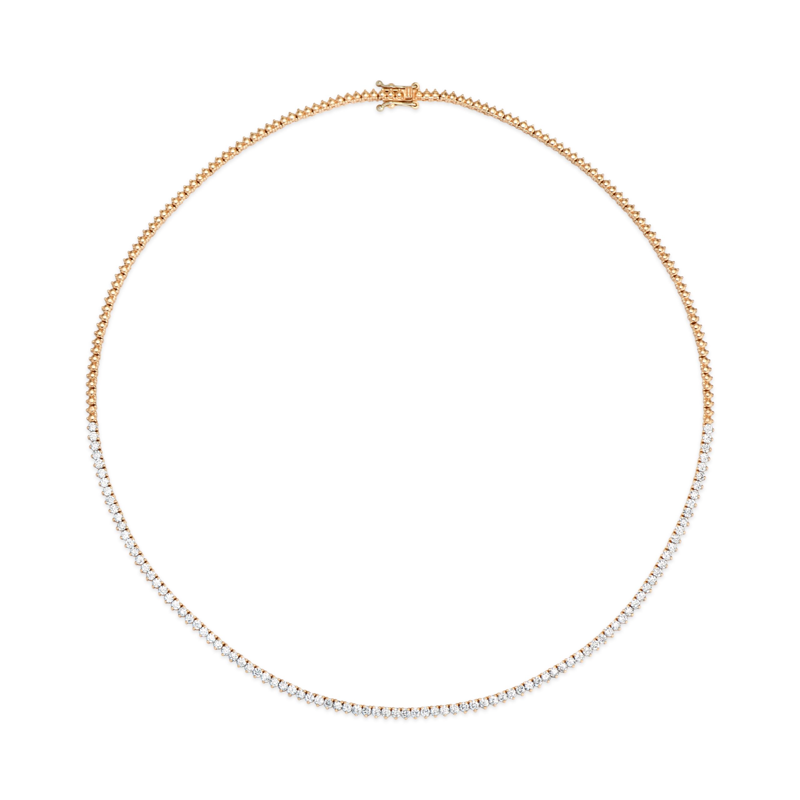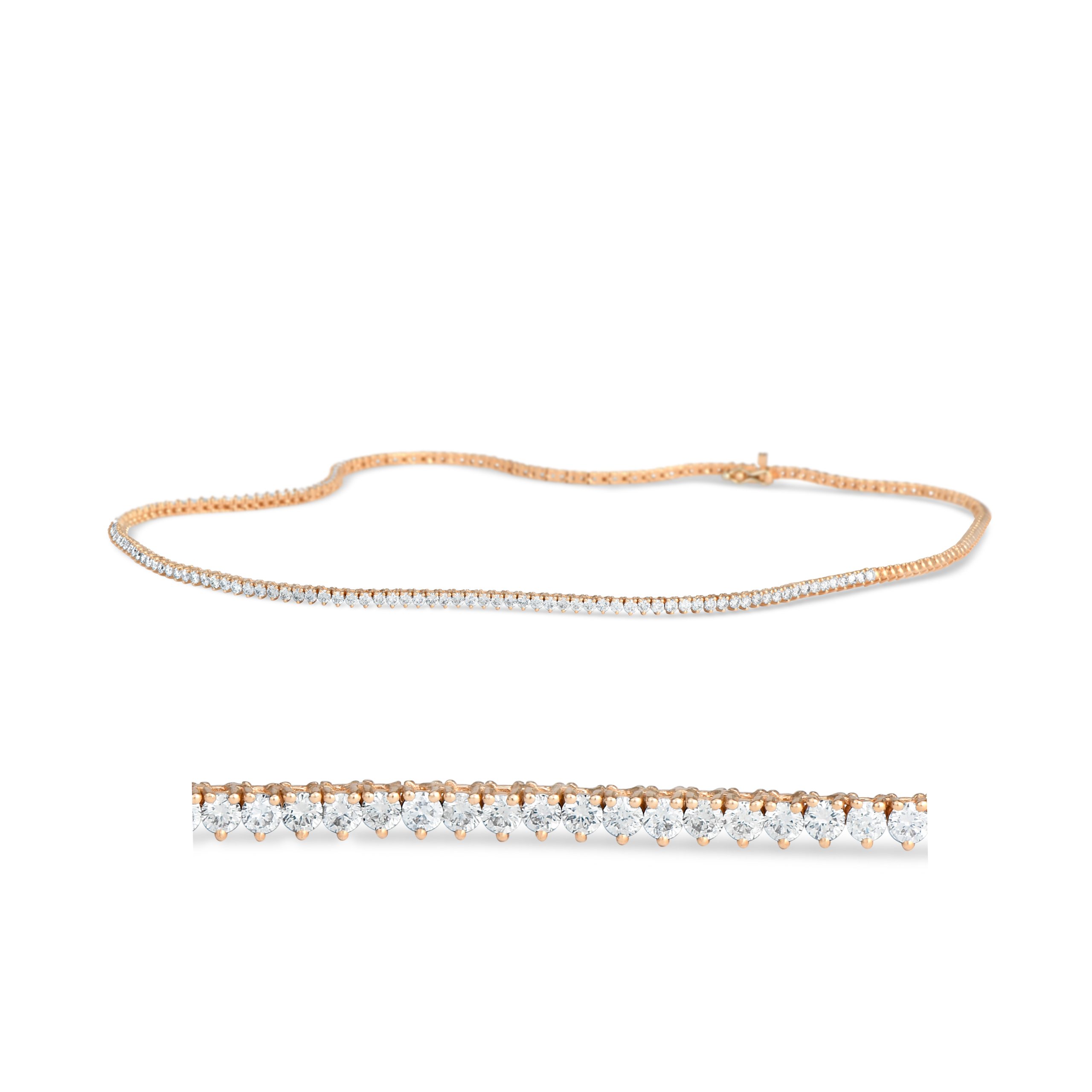שרשרת יוקרתית עשויה זהב ורוד קלאסי בחלקה העליון ומהווה המשך לקטע משובץ יהלומים עגולים לאורך כל החלק התחתון שלה. השילוב בין תחילת השרשרת בזהב חלק ועד לרצועת היופי המלאה ביהלומים יוצר קומפוזיציה של רכות וניגוד מרשים: מעבר הדרגתי של גוון הוורוד אל מצלול הזוהר של היהלומים. המחבר בטיחותי עם כמה עמדות הגדלה מאפשר התאמה מושלמת לכל אורך צוואר.