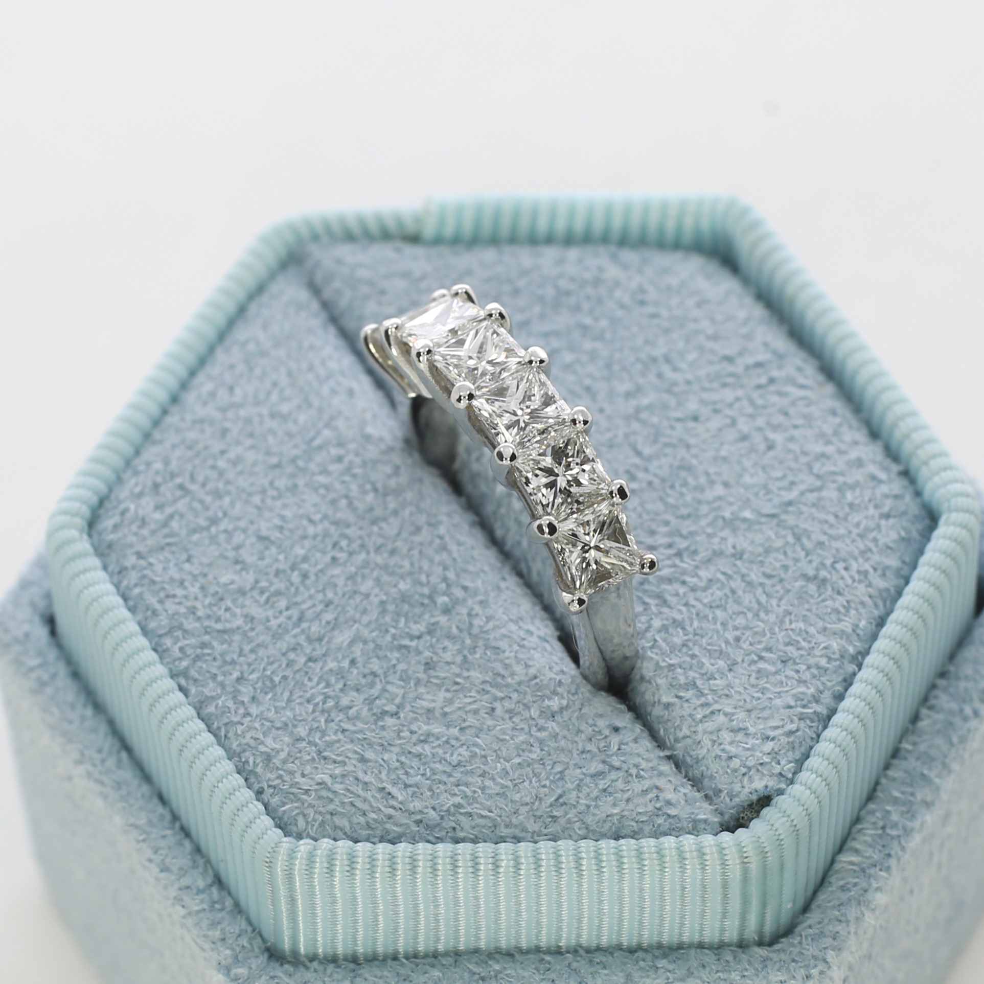 ולנסיה היא טבעת בעיצוב אלגנטי ומרשים, המשובצת בשישה יהלומים בחיתוך פרינסס – חיתוך מרובע שמעניק לכל יהלום מראה נקי, מודרני ויוקרתי במיוחד.