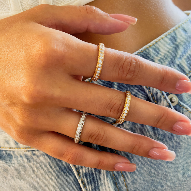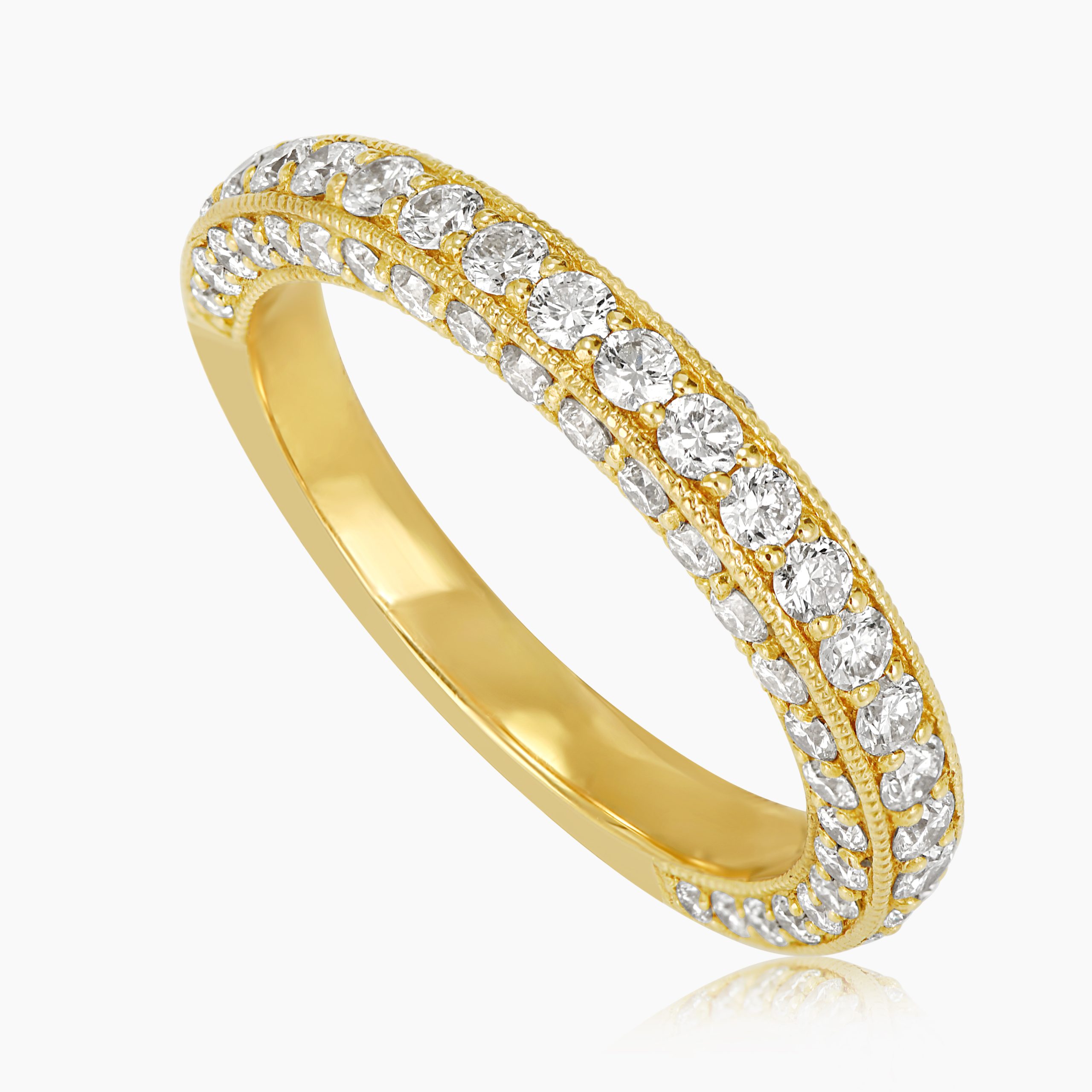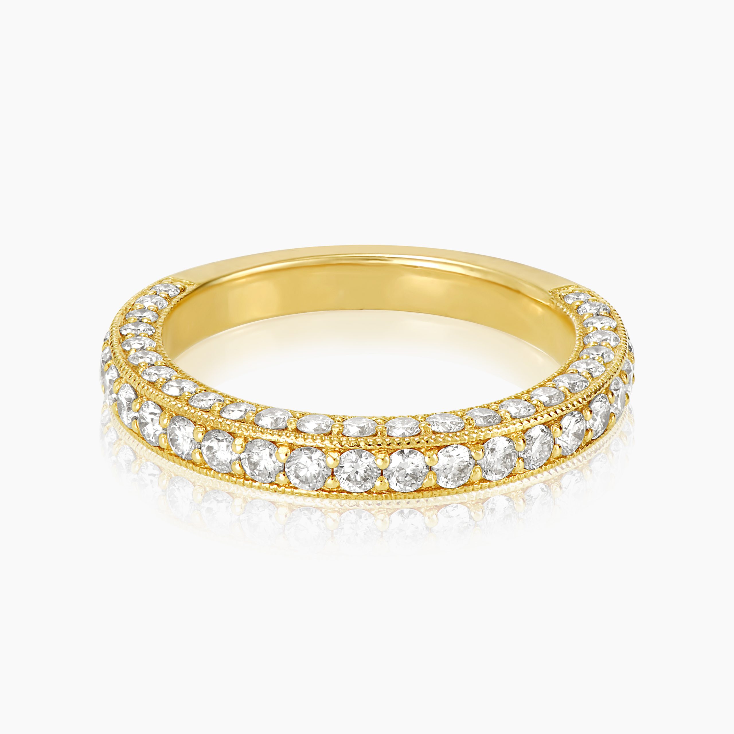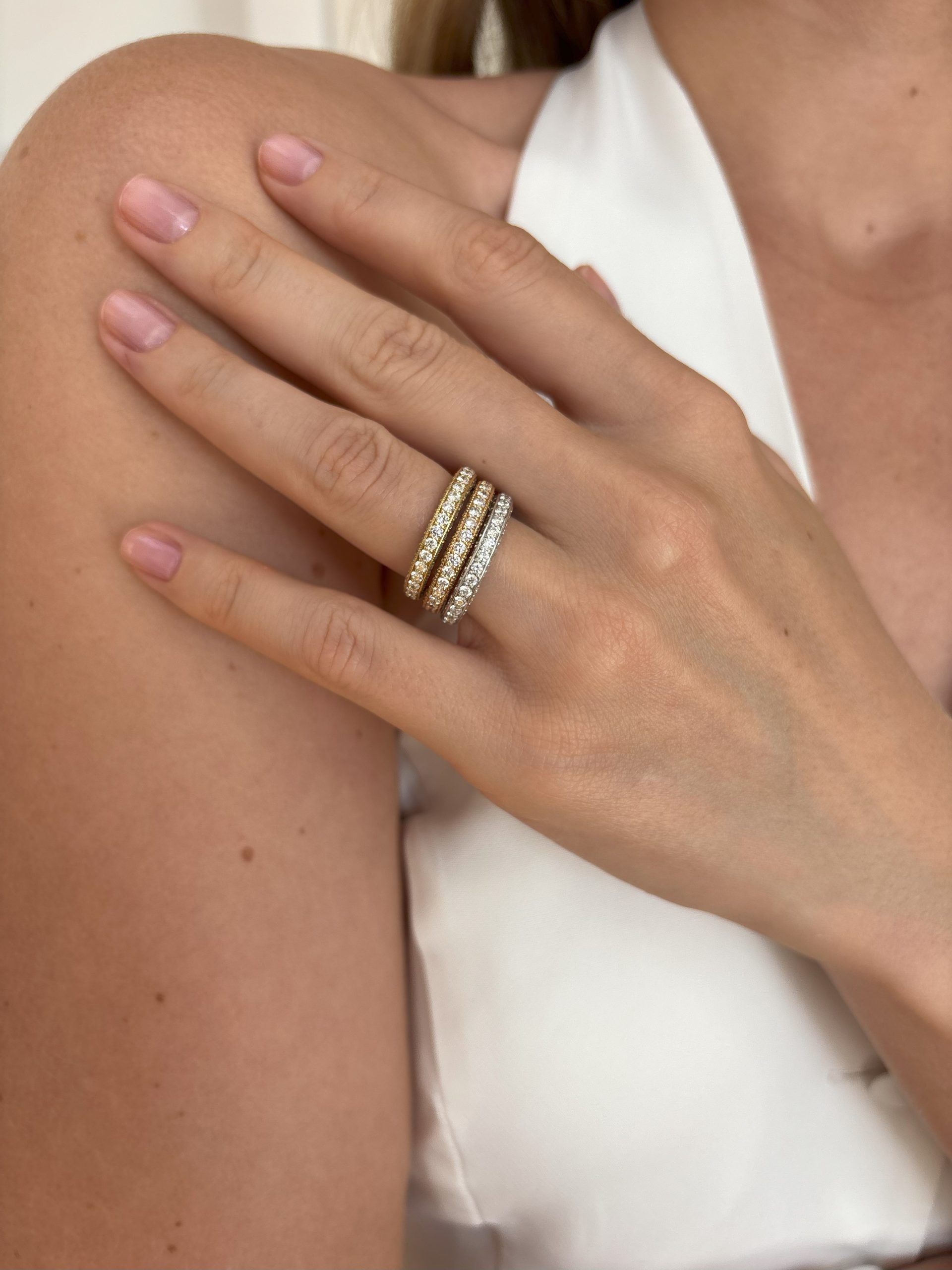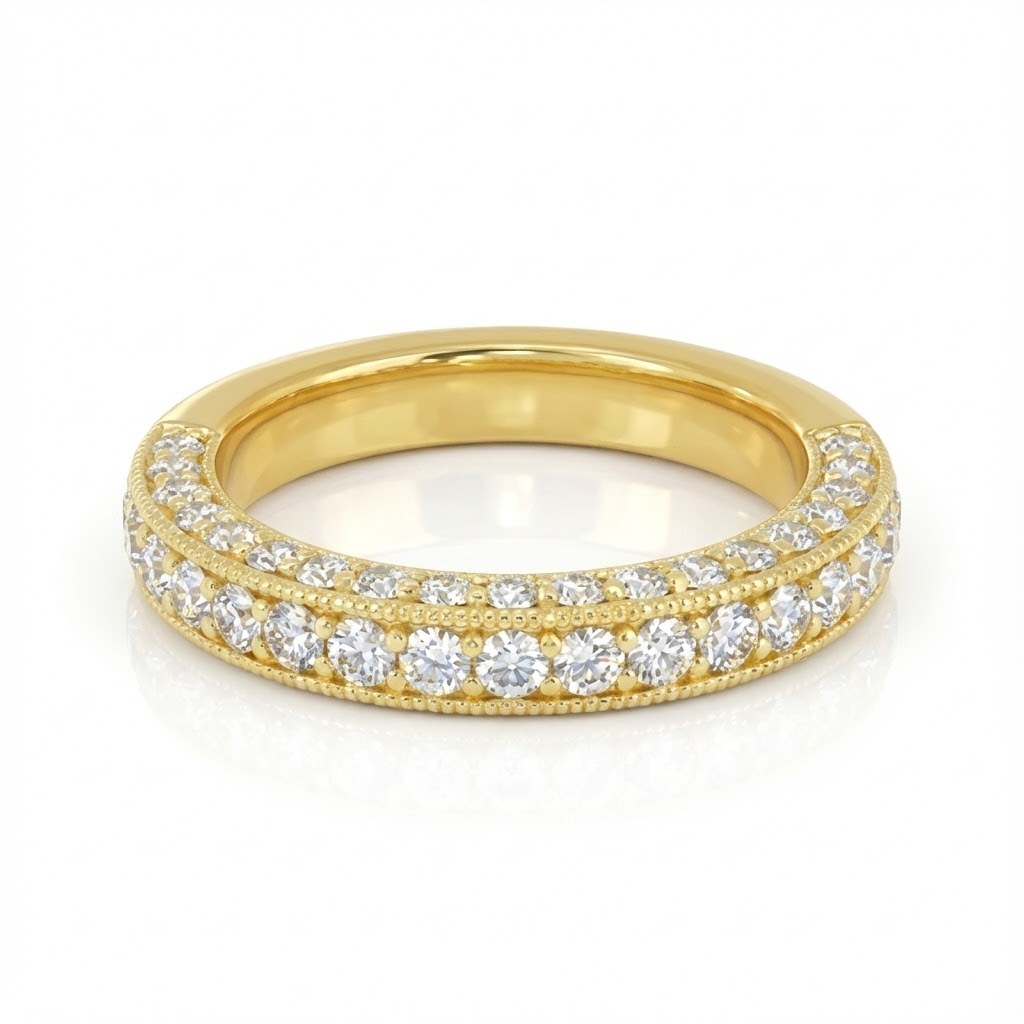 ויוויאן היא טבעת יהלומים עוצמתית ואלגנטית, המעוצבת עם שורת יהלומים עגולים נוצצים בחזית הטבעת, לצד שיבוץ נוסף ועדין של יהלומים קטנים בצדדים – ליצירת אפקט תלת־ממדי מבריק מכל זווית.