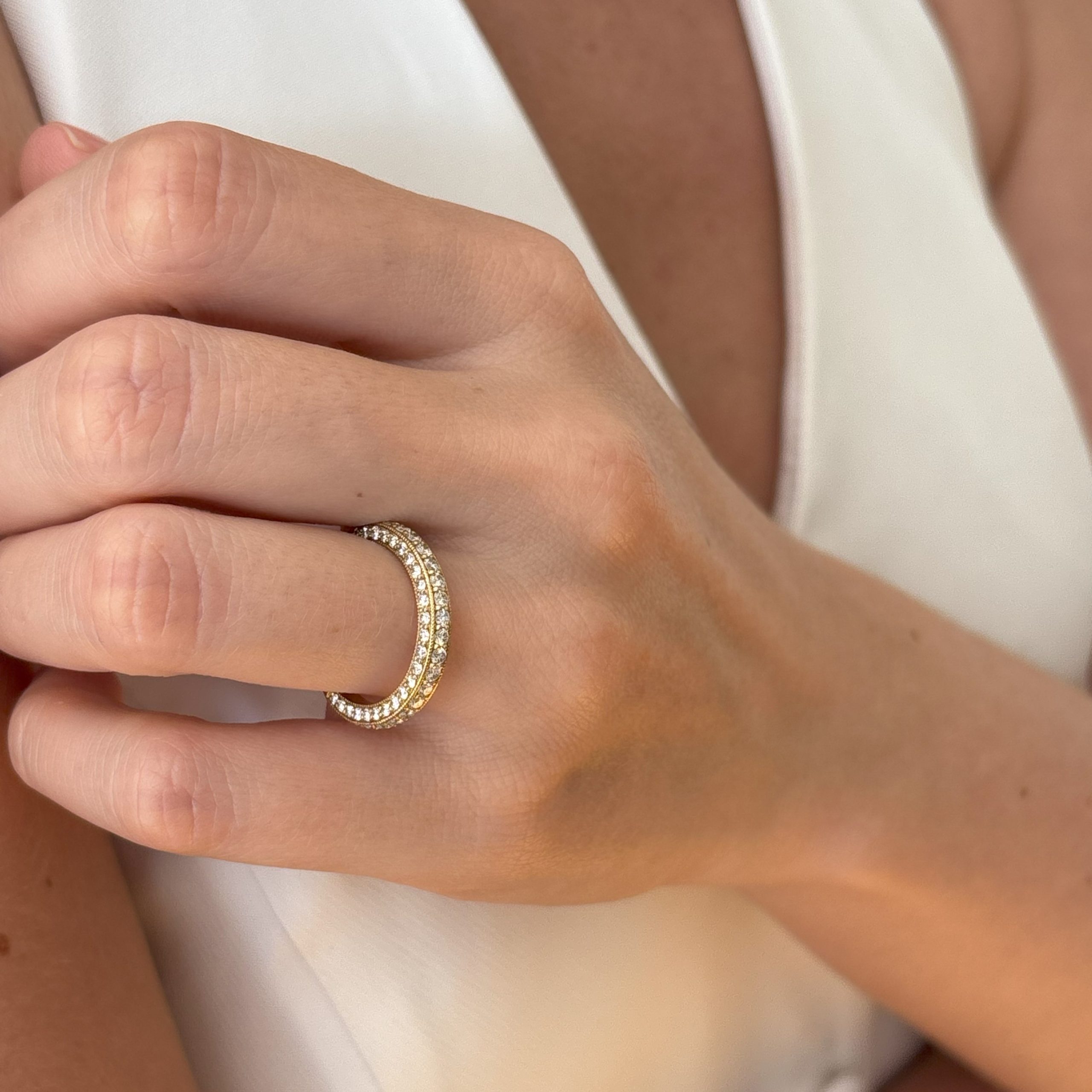 העיצוב הנקי והמאוזן מעניק לטבעת מראה קלאסי על־זמני, אך עם טוויסט מודרני מלא סטייל. מתאימה לאוהבות קווים מדויקים, נוכחות יוקרתית וזוהר עדין.
